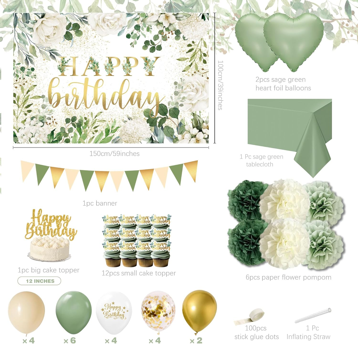 Store New Arrivals Add to Favorite View Feedback Contact Fast deliveries to the customer's home Quality customer service John Make the customers happy! Happy Birthday Decorations for Women Men,Birthday Backdrop,Banner Balloons,Table Cloth,Paper Pom Poms Party Supplies for Girls Boys (Sage Green) Description Birthday Kit-This comprehensive set has everything to deck out your party: a 59×39 - inch backdrop, banner, 2 heart foil balloons, tablecloth, 6 paper pom poms, assorted balloons (4 beige, 6 sage green, 4 printed, 4 confetti, 2 gold), 1 big + 12 small cake toppers, 100 glue dots, and an inflating straw. One purchase covers all decor needs for a cohesive sage green theme. Versatile for-Designed to suit every celebrant—women, men, girls, boys. The elegant yet playful sage green and gold floral aesthetic works for milestone birthdays, kids’ parties, or adult gatherings. Create a warm, inviting atmosphere that appeals to all age groups. Quality-Backdrop and banner feature durable, vibrant - printed materials. Balloons are thick and long - lasting. Paper pom poms add a touch of softness. With the included inflating straw and glue dots, decorating is quick and hassle - free. Spend less time setting up, more time celebrating. Worthy Moments-The beautiful backdrop, with its “Happy Birthday” gold script and floral details, becomes a standout photo booth. Balloons and pom poms add charm to snaps. Capture unforgettable memories against this stylish sage green backdrop, making your birthday pics truly special. Space-Turn homes, gardens, or event venues into a birthday wonderland. The cohesive sage green elements—from tablecloth to balloons—effortlessly elevate the space. Whether it's a small family party or a large get - together, this set creates a magical, themed environment in minutes. Product Description Color Sage Green Product Dimensions 8 x 8 x 2 inches Material Paper Item Weight 1.2 pounds Shape Irregular Manufacturer recommended age 24 months and up Occasion Birthday Included Components Balloon, Banner, Cake Topper, Tablecloth ABOUT US We offer the best prices around on high quality products. Our E-store includes media such as books, movies, music and games while offering electronics, toys, sporting apparel, clothing, tools, general home, garden items and more. SHIPPING We are always working hard to ensure your package arrives as soon as possible. Please understand that some factors like weather, high postal traffic, and the performance of shipping companies are outside of our control. We offer free shipping to the lower 48 states and ship within 2 business days of payment, usually sooner. We do not accept P.O. Boxes. Please provide a physical address. For shipping outside of the continental USA, we only use eBay's Global Shipping Program. The item is shipped to KY and then sent to the rest of the world. International customers are responsible for all duties and taxes. Continue to 'check out' to calculate costs for shipping the item to your country. Messages regarding eBay's Global Shipping Program MUST be directed at eBay EXCLUSIVELY. RETURNS We offer a 30-Day Return Policy on items in which you are not completely satisfied with. You have the option of a full-refund or an exchange of the item. No returns are available on items shipped outside of the USA PAYMENT We accept PayPal. CONTACT US This page content is yet to come Please ad us to your favorite seller and visit again later Thank You CUSTOMER SATISFACTION We try our very best to make sure every customer is completely satisfied. If there's a problem, message us! We're happy to help. WE ACCEPT