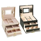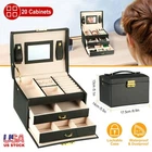 eBay Jewelry Case Organizer 3-layer Lockable Travel Jewelry Box PU Leather Storage Display Case Featured Item Product Detail Image Gallery Product Description Overview: Are all of your earrings, bracelets, and rings still piling up on the shelf or dresser? Beautiful trinkets can't just be shoved into a dark drawer or hung on a nail, they require a stylish jewelry case for safe keeping. Our jewelry case can keep all your beloved jewelry well organized, easy to find, and beautifully displayed when you store them in this jewelry case. With versatile structures, the jewelry box suits for rings, earrings, necklaces, bracelets, watches and other matching items. Selected materials and fine workmanship create a fashionable look adding decor to your home. Say goodbye to the days of hunting down jewelry you needed, and find what you need instantly. Features: * 20 CABINETS STORAGE ORGANIZER: The lid of our jewelry case contains a mirror while both sides have 6 earring holder slots. The upper level contains 1 large compartment and 4 small compartments in the middle offering space to store your earrings,chain necklaces,small watches,and 7 slots on the right side for your rings and stud earring. And below the box is two layers removable drawer allowing you to store your whole jewelry collection. It will rescue you from taking 20 minutes to untangle what you want to wear. * A SAFE PLACE FOR YOUR TREASURES: Don't let your jewelry disappear into your drawers but offer a perfect place for presenting and storing your treasures with this elegant jewelry case. Your favorite jewelry will be tucked safely into this case keeping them out of damage, including scratches, dust, and falls, etc. Besides, it is lockable with a high-quality metal lock and key which can protect your jewelry more comprehensively. * STURDY & ELEGANT APPEARANCE: Our jewelry case is made of waterproof artificial leather, MDF and claimond veins, and treated with fine workmanship which make it durable and the crocodile pattern looks extremely fashionable and exquisite. Its harmonious combination of materials and tones can radiate peace for your beauty area. *POTABLE MULTIPURPOSE CASE: Handle on the top makes the jewelry case portable, and allows you to take it wherever you want. And the removable compartment and drawer with practical divisions for various pieces of jewelry such as rings, earrings, and chains, close it with a press button, it quickly transforms into a small travel case. *GREAT GIFT IDEA: With elegant appearance and considerate design, this jewelry case is great for personal use and home decoration. And it also an optimal gift for birthday, valentine's day,wedding,Christmas and New year. Specifications: Brand: iMounTEK Product Type: Jewelry Case Material: PU Leather, MDF and Claimond Veins Available Colors: Beige,Black Product Size: 17.5x14x13cm /6.9x5.5x 5.1in (L×W×H) Product Weight: 730g / 1.61lbs Package Size: 17.5x14x13cm /6.9x5.5x 5.1in (L×W×H) Package Weight: 730g / 1.61lbs Package Contents: 1 x Jewelry Case Terms & Conditions Thank you for your business !