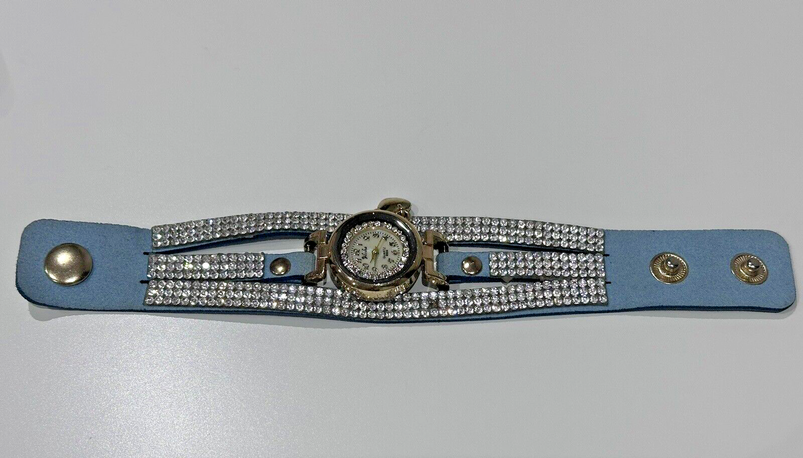 Bracelet Beautiful Wrist Watch for girls woman Leather belt crystal rhinestone METAL HEART HANGING ON SIDE, PRESS BUTTON 2 SIZE ADJUSTABLE.