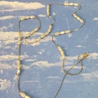 Add a touch of elegance to your outfit with this unique necklace. The medium-sized piece is handcrafted with care in California, USA using high-quality metal materials, making it one of a kind. This necklace features a beautiful nature-inspired design with an art deco twist, perfect for any occasion. The necklace measures 17 inches in length and width, and is a single piece unit. Its ultra contemporary design, with abstract and Americana elements, make it a must-have for any fashion-forward individual. This necklace is an original, handmade creation, and is not personalized nor signed.