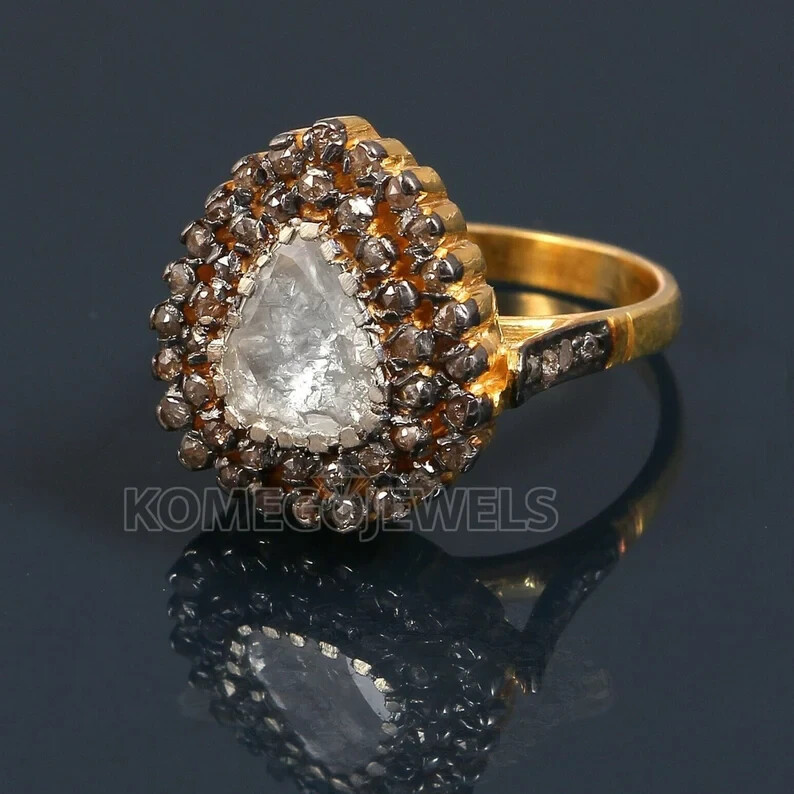 Main Stone Depth: Irregular Metal: Silver Base Metal: 925 Sterling Silver Occasion: Anniversary, Birthday, Christening, Christmas, Engagement, Mother's Day, Valentine's Day, Wedding Color: Gold Main Stone Treatment: Not Enhanced Main Stone: Diamond Customized: Yes Number of Gemstones: As Per Given Picture Diamond Color Grade: I Handmade: Yes Secondary Stone: Polki & Pave Diamond Cut Grade: Good Brand: Handmade Main Stone Width: Irregular Era: Victorian Type: Ring Setting Style: Bezel Sizable: Yes Number of Diamonds: As Per Given Picture Main Stone Shape: Irregular Colored Diamond Intensity: Fancy Country/Region of Manufacture: India Main Stone Length: Irregular Metal Purity: 925 Vintage: Yes Main Stone Color: Natural Shape: Irregular Total Carat Weight: Irregular Diamond Clarity Grade: Included (I1) Country of Origin: India Main Stone Creation: Natural Ring Size: All Size Are Available Material: Natural Diamond, 925 Sterling Silver Wholesale: Yes Band Width: Irregular Personalize: Yes Style: Band Theme: Angels, Anime, Art, Awareness, Beach, Beauty, Colleges & Universities, Ethnic, Family & Friends, Hunting, Inspirational, Letters, Numbers & Words, Love, Luck, Magic, Nature, Religious, Vacation, Western, Holiday Personalization Instructions: we will feel happy to serve you with the best we can Signed: Yes