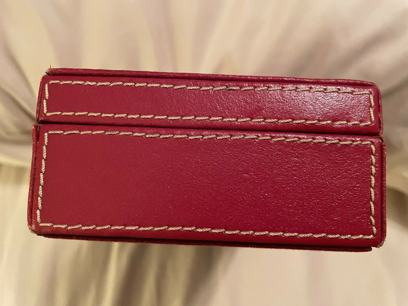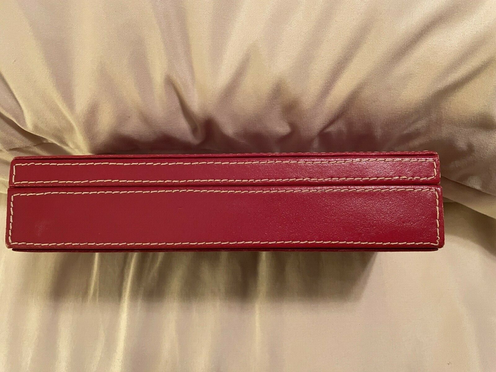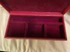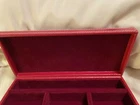 Jewelry Box - Valet Box. Red Faux Leather with Divided Red Felt Compartments. Approx. 9" x 4" x 2". Pre-owned in good condition. Please ask questions before purchasing.
