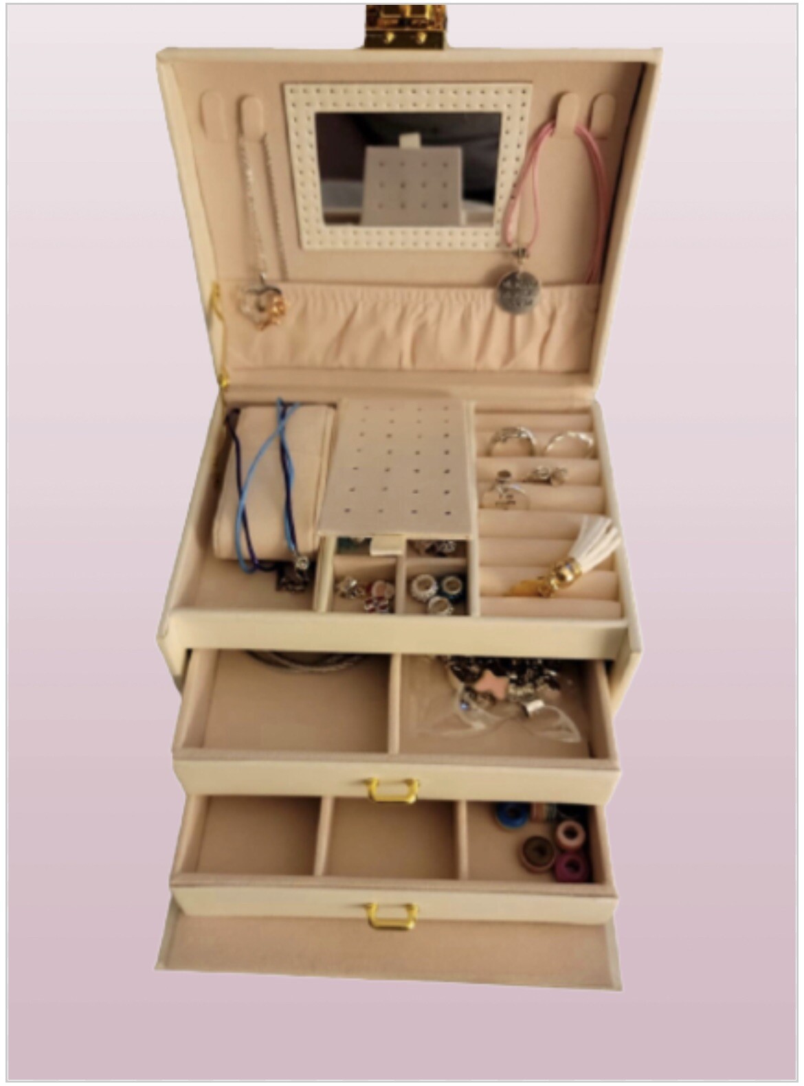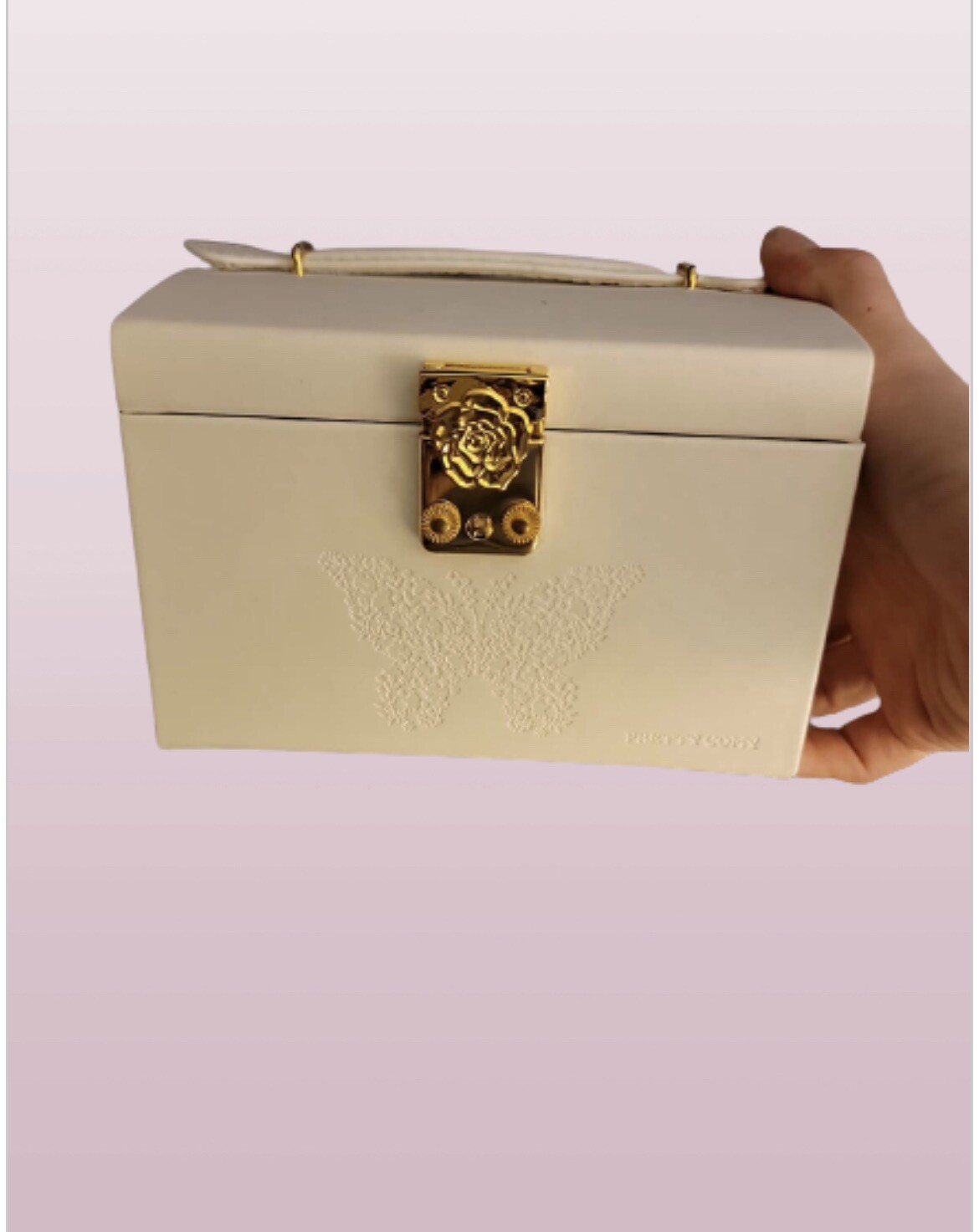 Jewelry Box for Girls Women, Jewelry Organizer Box 3 Layer with PU Leather, Travel Jewelry Case with Mirror for Earring Ring Bracelet Necklace (Rose Lock & Butterfly Print) The classic minimalist White Pink color with hot metal elements, high-quality Craftsmanship and Attention to detail make it "Exquisite" Synonymous with. *【1 mirror + 7 ring grooves + 7 Bracelets boxes + 8 earring grooves + 2 porous multi-function hooks + 3 multi-function large compartments]】When you end a tired day, you take off your jewelry, Placed in this jewelry box with a large capacity。The girls jewelry box have the perfect combination of little compartments and drawers to be able to house anything a young girl might have. We no longer have to go through multiple boxes to find a pair of matching earrings. *【Lightweight portable design + portable internal mirror + cute safety lock. Size: 6.7" x 4.7" x 4.9", it’s compact. The 2 drawer jewelry box can accompany you to every date】 It’s size is just right, you can carry it with you, so you have a safe place to store your jewelry. The travel jewelry organizer will not steal your limelight, but you can use its image to express your good taste. *【Gold tough PU leather on the outside & Pink soft velvet on the inside, Nice Jewelry Box for Young Ladies.】The jewelry boxes 3 Layer for Ladies can provide high quality protection for your valuables and prevent scratches and fading. *【PRETTY COMY jewelry box is perfect gift for Christmas, birthday, anniversary or Mommy-Daughter time】Choosing this jewelry box will create a memory of precious items in their minds that they will never forget. This is something that is easily passed on from generation to generation and cherished forever. ! NOTES: * Only Jewelry Box included (Other accessories not included) * Comes New with Box