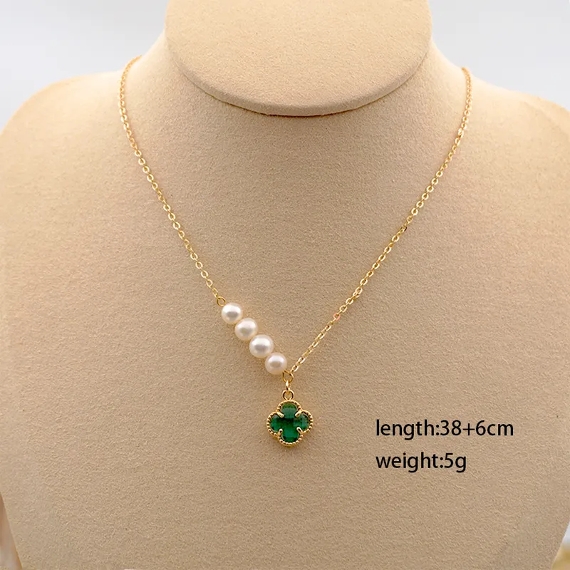 This is a beautiful and elegant necklace made of stainless steel with a leaf-shaped pendant and a clover-shaped main stone. The pendant is adorned with a cluster of cubic zirconia stones, giving it a luxurious look. The necklace has a lobster closure and is 38 inches in length, making it suitable for various occasions such as Mother's Day, Christmas, Graduation, Wedding, Anniversary, Father's Day, Birthday, Christening, Confirmation/Communion, and Valentine's Day. The necklace is also adjustable and comes with a cable chain type. It is a perfect gift for loved ones or a nice addition to one's own jewelry collection.