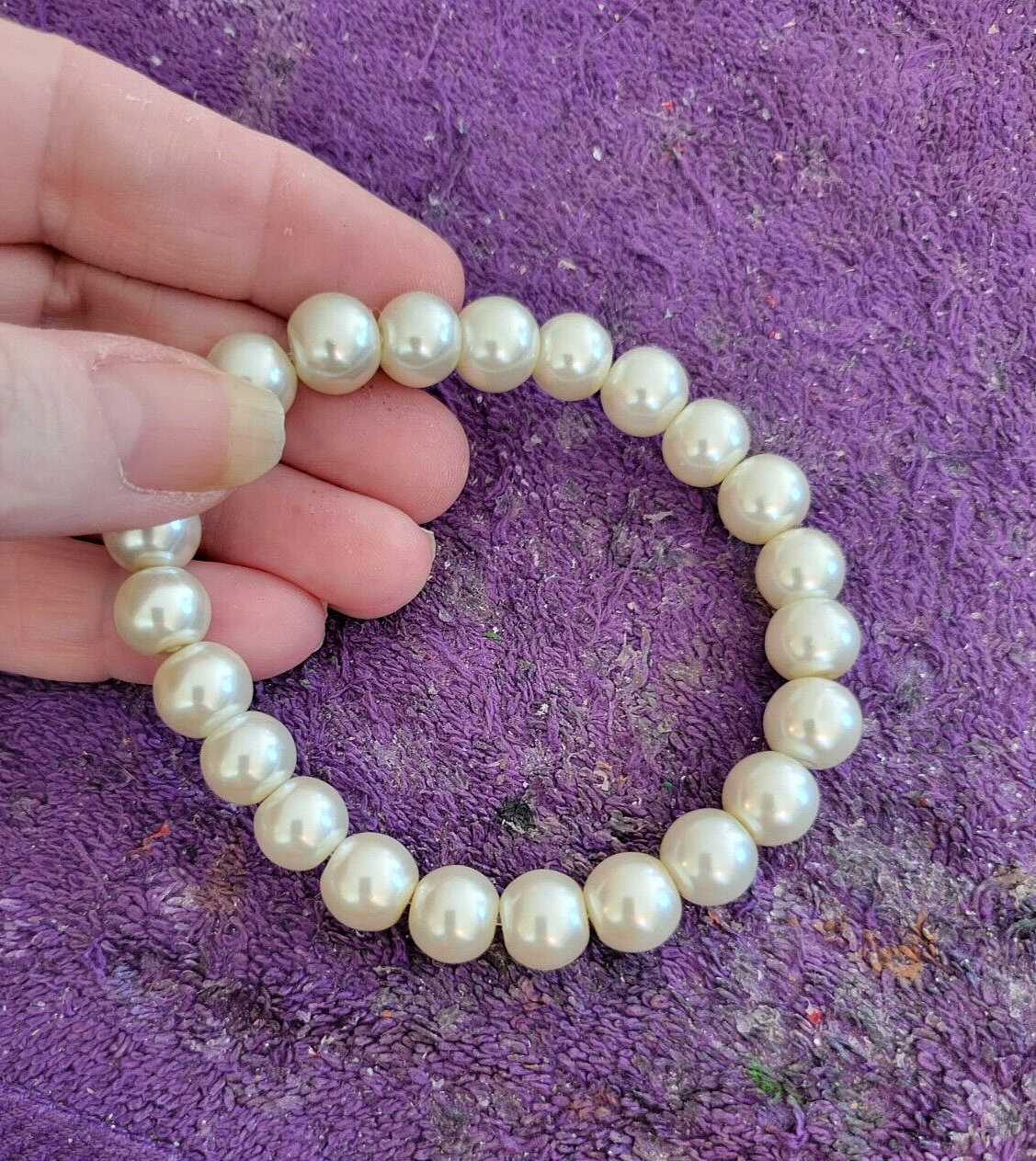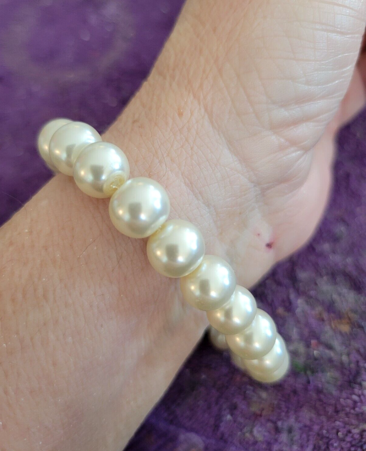I make ALL of my Bracelets in Sizes 7" & 8". If you need Another Size, just let me Know in the Sales Notes. ~~ 0028900~~ ~Please scroll DOWN to view the entire Listing~ (To use the Magnifying tool to read Tags/Labels and see Closeup views, please choose a picture with your cursor, and then Hold your cursor over the picture. A small magnifying box should appear and will Allow you to see Closeup.) Note to Buyer: I'm sorry postage is so expensive, but I choose to ship your item in a box, so it will arrive undamaged. ** Bracelet Beautiful Faux Pearls Pearl Heavy Stretch Beaded Bead - Very Unique! 8" ** This Bracelet is Beautiful, made of Extra Large Glass Faux Pearls, is Heavy, in Excellent Condition, Strung on Strong Elastic for Easy On and Off and a Great addition to Your Wardrobe. My Wrist is 6", for Size Comparison. Dimensions : 8" Long Bracelet 3/8" Diameter Beautiful Glass Faux Pearls Perfect for Yourself or as a Gift! ~~I'm Great to deal with. Check out my Feedback and my Other Auctions!~~ Great seller and item! Quickest shipped item ive purchased!!! ~janeteliabetho2010 Great Jeans!! Great seller! Fast shipping! Thanks and would buy from you again!! ~hoshek40 Love the jeans - Highly recommend seller. Thanks ~baha_79 Item just as described, super fast shipping. Great Ebayer. A++++ ~jennifer315 Please leave Positive & Glowing Feedback and I will be happy to do the same! ~~~~~~~~~~~SMOKE FREE HOME!!~~~~~~~~~~~ Thank you for reading the ENTIRE listing before placing a bid. ~~ Payment MUST be received within 6 days ~~ POLICIES: PLEASE READ BEFORE YOU BID ~Please Ask all Questions BEFORE Bidding - Returns on a Case by Case basis only~ Please read the entire listing BEFORE bidding. **By placing a BID on this item, you are AGREEING to Make Payment and abide by ALL terms, directions & descriptions in this listing.** The Pictures Show the Type of Item you will Receive. The Bead Colors will be the same, but the Bead shapes will be slightly different on the Item you Will receive. Thank You for Checking out My Listing !