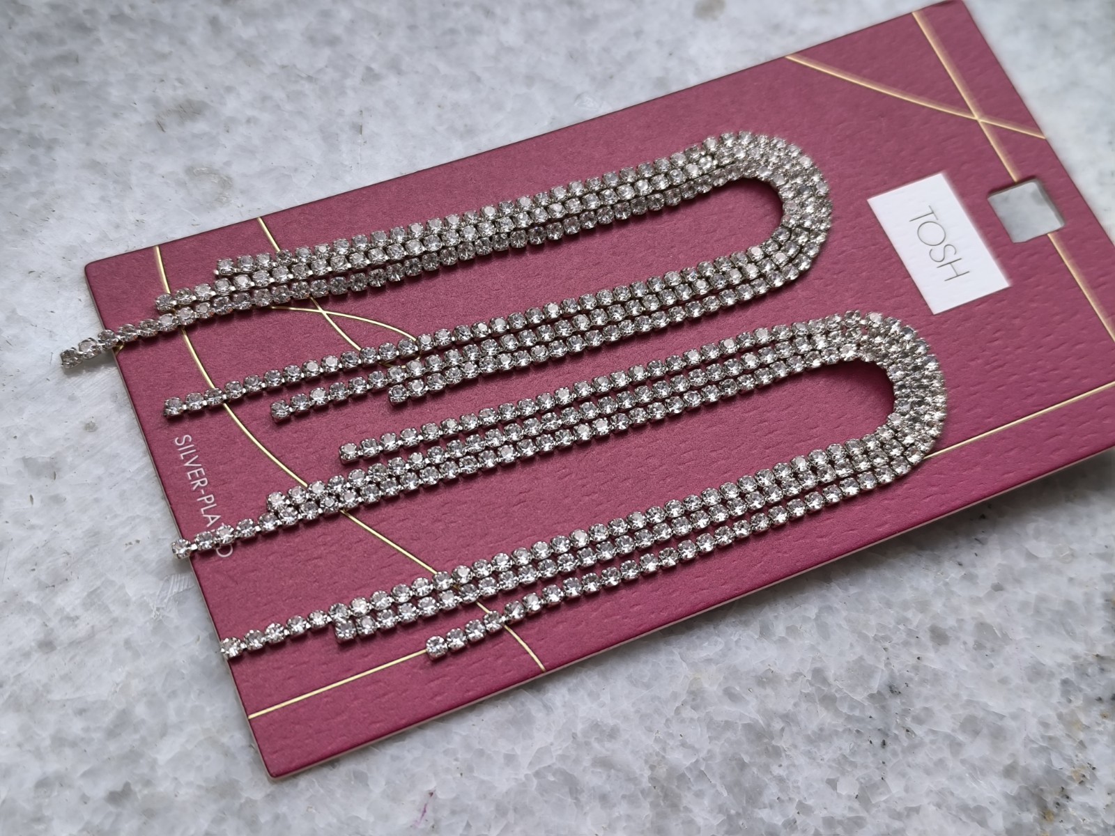 These beautiful silver plated earrings by TOSH feature a rainbow shape with white/colorless crystals. The earrings have a pin closure and are perfect for occasions like Christmas, graduation, and anniversaries. Made in Germany, these dangle/drop style earrings exude beauty and elegance, making them a perfect accessory for any special event. The earrings are not personalized or vintage and are a stunning addition to any jewelry collection.