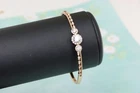 *** Non-Tarnish -- Includes 1-Year No-Tarnish Guarantee *** ✓ Gold Plated Over premium quality brass ✓ Beautiful rose gold finish for a warm, classy look ✓ Sparkling triple cubic zirconia centerpiece ✓ Slim, feminine design perfect for daily or occasion wear ✓ Comfortable to wear with a secure hinge clasp ✓ Diameter: 6 cm (2.36 inches) – ideal for most wrist sizes ✓ Great for gifting or personal style upgrade