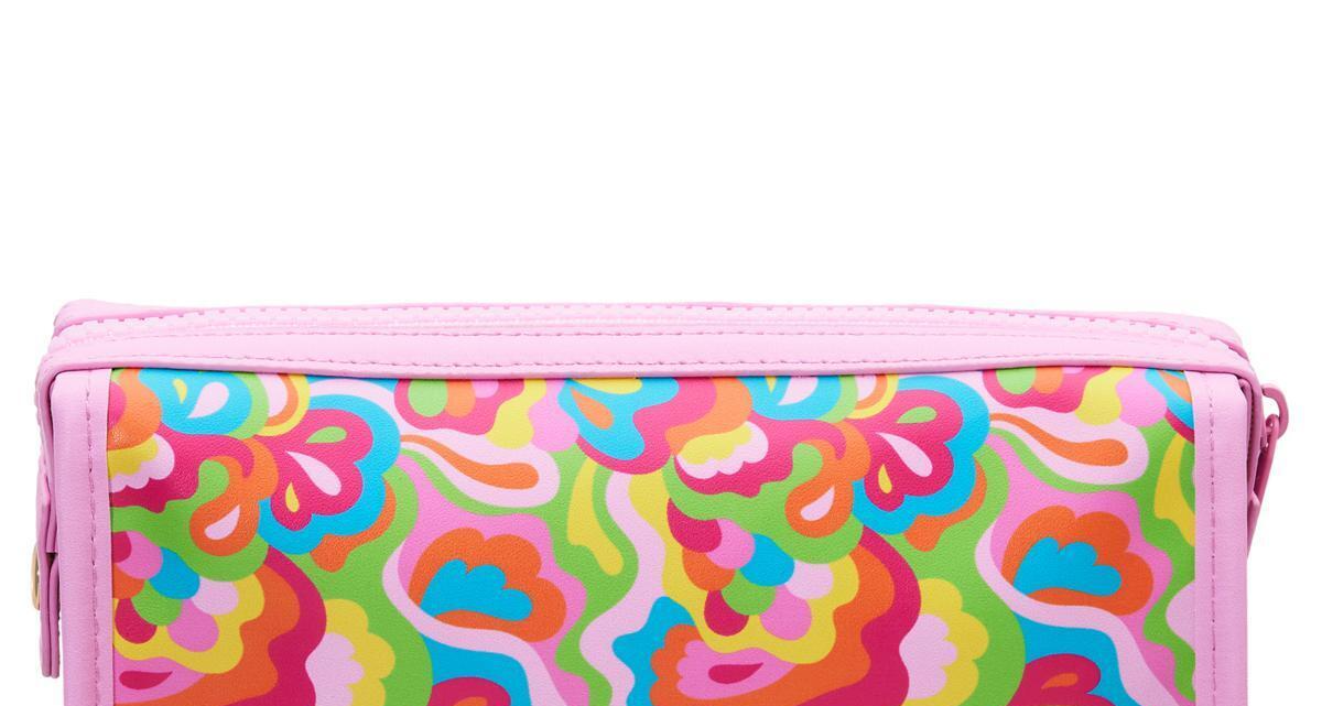 Makeup Bag Clutch Abstract Floral Paisley Watercolor Print Zipper Vegan Leather 6"H x 7.5"W