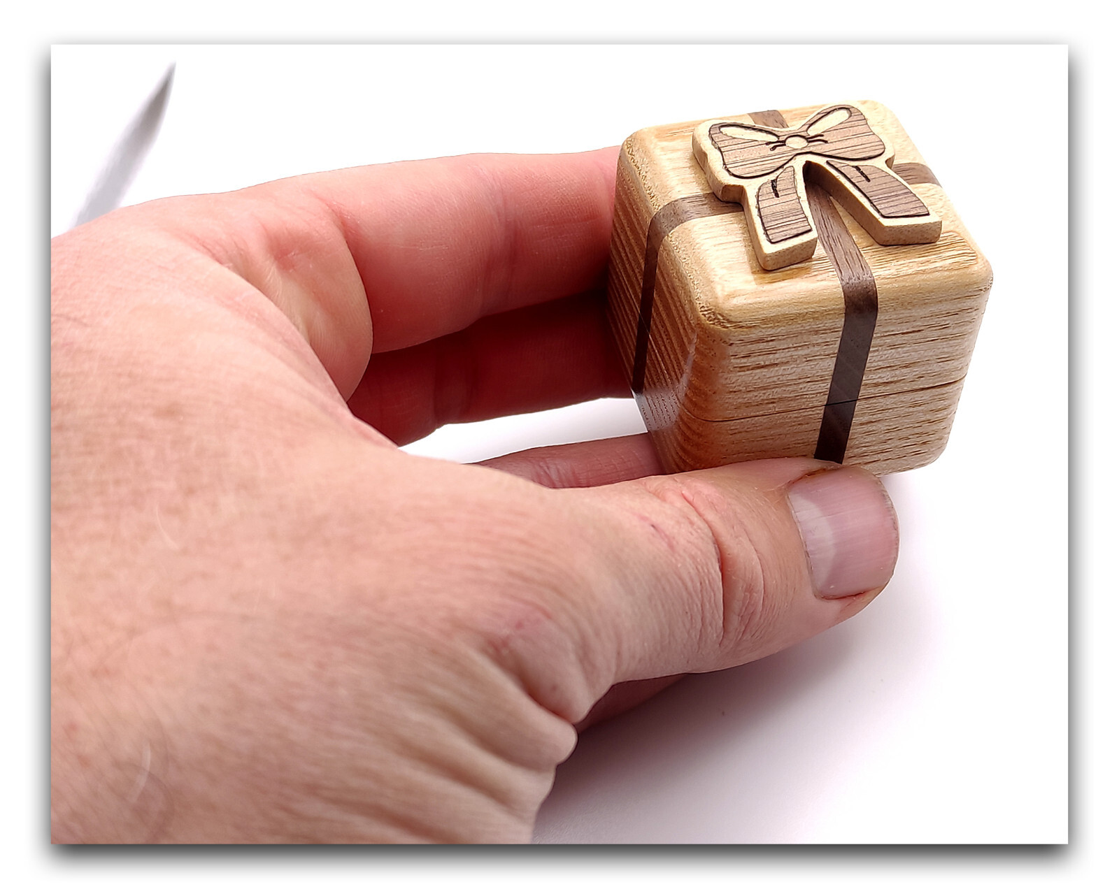 This engagement ring box is made of ash and walnut wood. The lid of the wedding box is held firmly by magnets in two corners. Inside is a black suede cushion. Red, yellow, blue cushions available The box can be engraved with your names, initials, text or picture and will be great personalized gift. I can make a pillow with slots for 2 rings. Size: high - 45 mm. (1.8") wide - 42 mm. (1.7") deep - 42 mm. (1.7") Inside diameter - 30 mm. (1.2") Ring height max – 40 mm. (1.6") Laser engraving +4$
