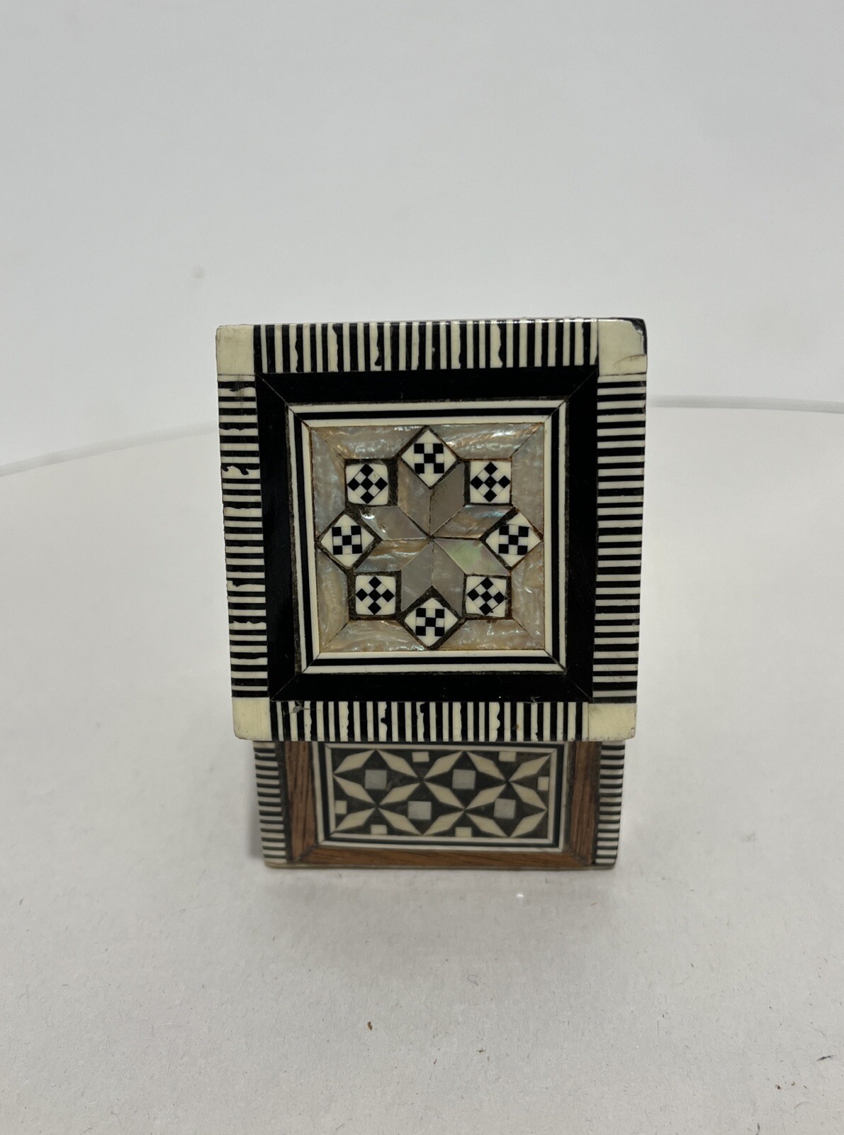 Jewelry Box Wooden Mother Of Pearl Exterior Decor Small. Condition is Pre-owned. Shipped with USPS Ground Advantage.