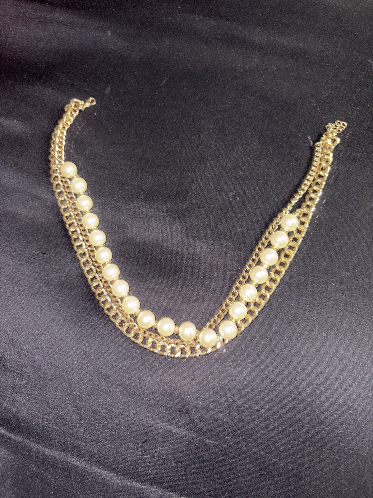 Main Stone Shape:RoundSigned:NoWholesale:NoStyle:LayeredAntique:NoPersonalize:NoSeller Warranty:NoType:NecklaceCustomized:NoMain Stone Treatment:UnknownMetal:White Gold PlatedNecklace Length:16 inMain Stone Color:WhiteMain Stone Creation:UnknownMain Stone:PearlColor:GoldMetal Purity:UnknownBase Metal:UnknownChain Type:Ball/BeadSecondary Stone:PearlBrand:UnbrandedPendant Shape:Round