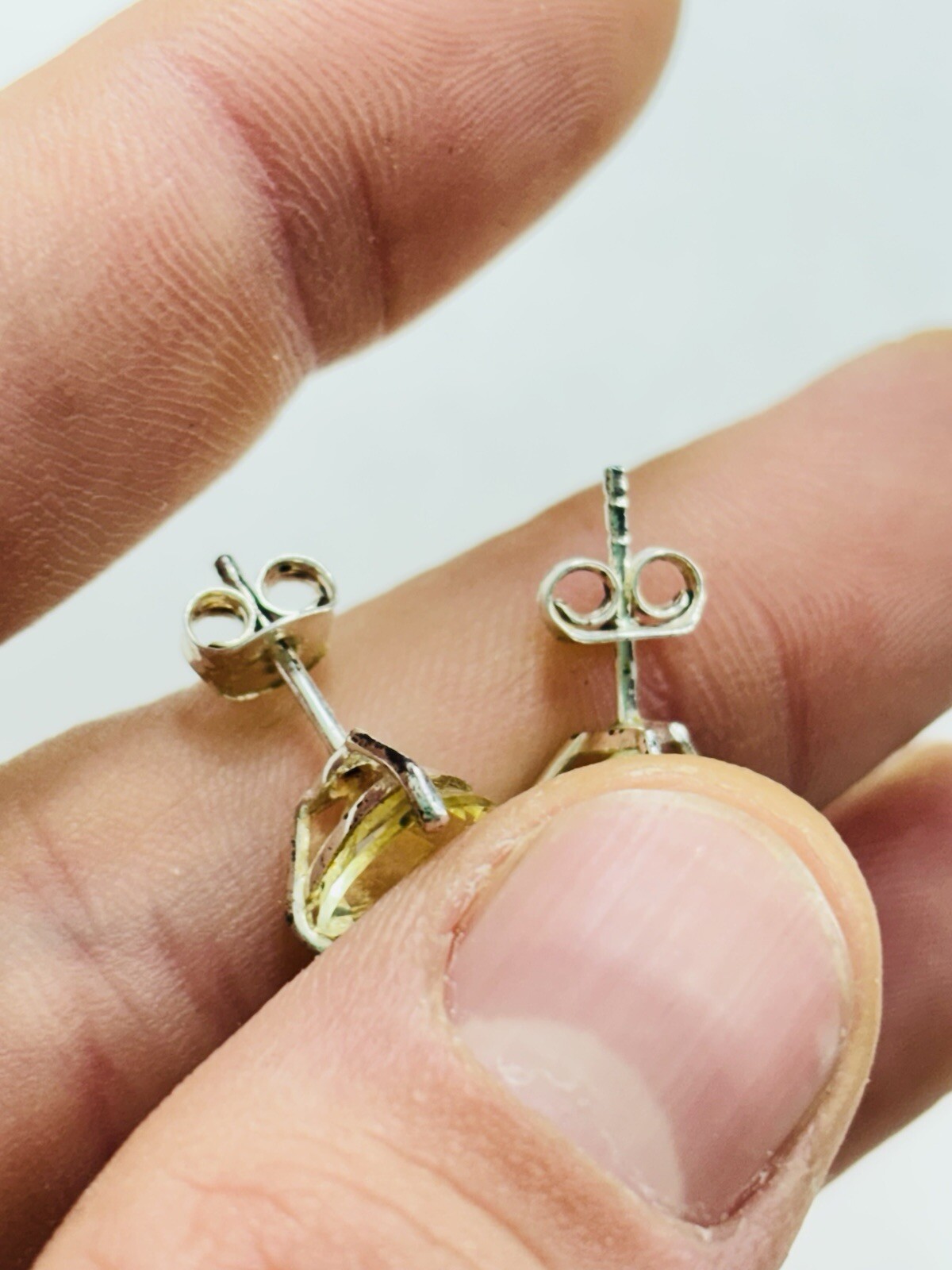 Silver stud earrings with citrines never worn,approx 8 mm diameter.