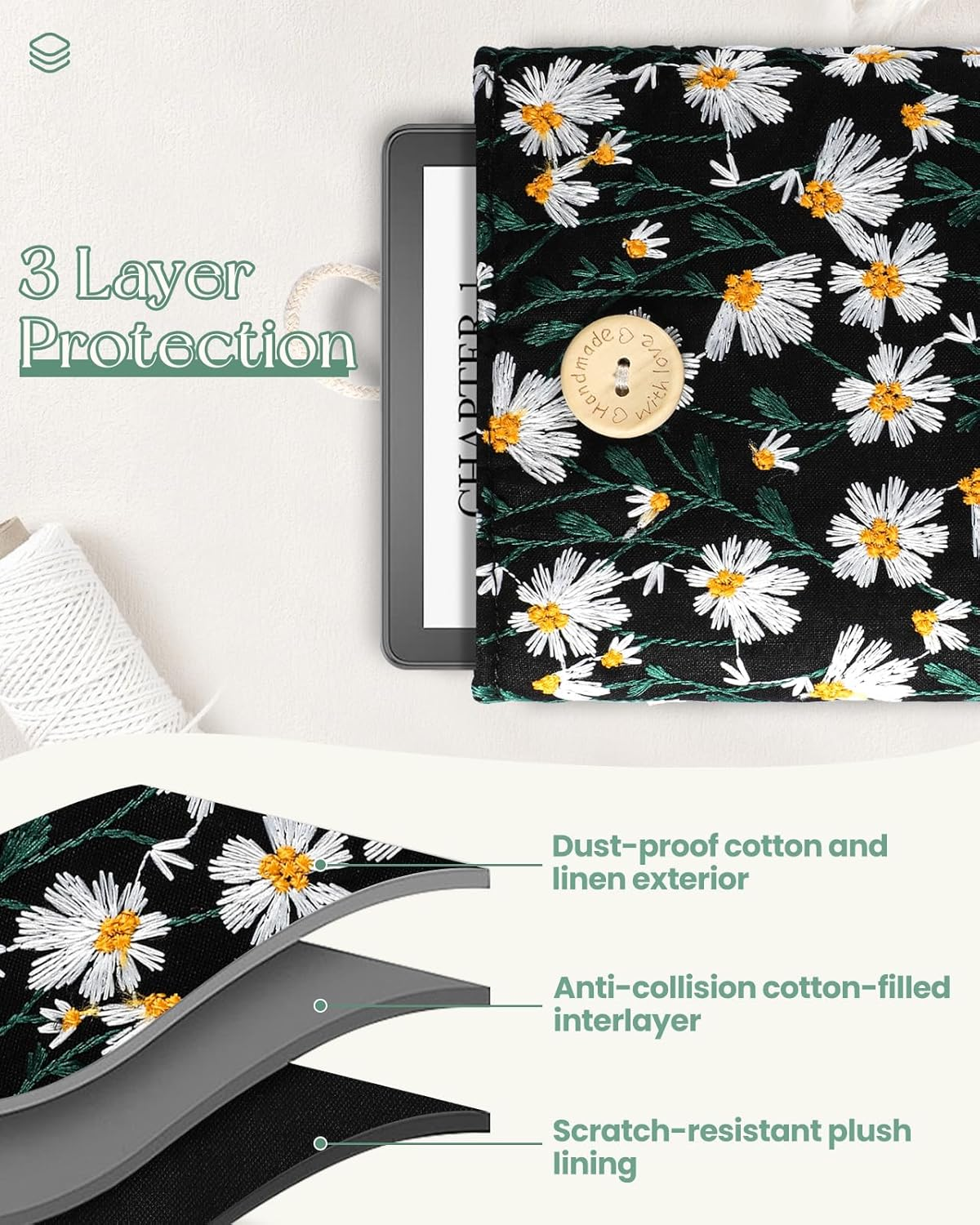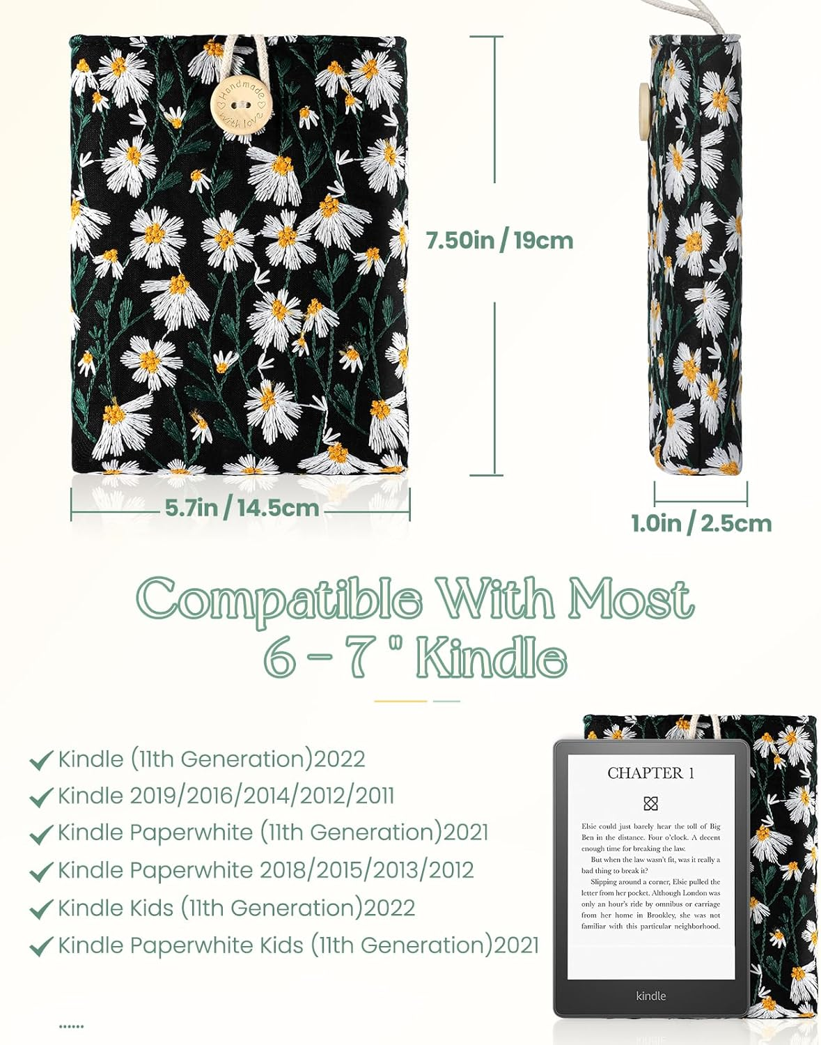 Store New Arrivals Add to Favorite View Feedback Contact For Kindle Sleeve 6-7 Inch Embroidered Daisy Floral - Compatible with Kindle Paperwhite/Basic 6'', for Paperwhite 6.8 Inch/Signature Edition 6.8'' Cotton Padded for Kindle Pouch Sleeve Case Description Item Dimensions 7.48 x 6.02 x 0.48 inches Shell Type Soft Material Type Embroidered Compatible Devices for Kindle 6-7 inch E-Readers Color Daisy Floral Theme Floral Additional Features Cotton Padding, Embroidered Form Factor Sleeve Compatibility: This for Kindle sleeve 6-7 inch fits for Kindle Paperwhite (2018/2015/2013/2012)/Basic 6'', for Kindle Paperwhite 11th generation 2021 6.8'', for Signature Edition 2021 6.8''. Note: This for Kindle sleeves bag case does not fit more than 7 inch devices. Embroidered Design: Fashionable embroidered design enhance the appearance of your for Kindle, adding a touch of enjoyment to your reading experience and show off your elegance at the same time. All-round Protection: Our for Kindle sleeves case is made of premium embroidered, cotton and fabric, with a wooden button closure and wider base extra designed to provide long-lasting protection from scratches and impacts, keeping your device safe. Soft Cotton Padding: This for Kindle pouch sleeve has a lovely and pretty pattern, which is great for you to use in daily life or while traveling. It is designed with double-layer fabric inside and extra soft cotton padding to provide more protection for your for Kindle Paperwhite/for Kindle Signature Edition. Practical Fashion: This for kindle sleeve size is 7.48" * 6.02" * 0.48", it is a stylish and practical accessory for Kindle users and for e-reader lovers. It features a secure elastic button closure for easy access without a zipper, it is an great for Kindle pouch sleeves accessories. Product Description The video showcases the product in use. The video guides you through product setup. The video compares multiple products. The video shows the product being unpacked. 1 3 Layer Protection 2 Compatible Size 3 All-round Protection 4 Unique Design ABOUT US We offer the best prices around on high quality products. Our E-store includes media such as books, movies, music and games while offering electronics, toys, sporting apparel, clothing, tools, general home, garden items and more. SHIPPING We are always working hard to ensure your package arrives as soon as possible. Please understand that some factors like weather, high postal traffic, and the performance of shipping companies are outside of our control. We offer free shipping to the lower 48 states and ship within 2 business days of payment, usually sooner. We do not accept P.O. Boxes. Please provide a physical address. For shipping outside of the continental USA, we only use eBay's Global Shipping Program.The item is shipped to KY and then sent to the rest of the world. International customers are responsible for all duties and taxes. Continue to check out in order to calculate costs for shipping the item to your country. Messages regarding eBay's Global Shipping Program MUST be directed at eBay EXCLUSIVELY. RETURNS We offer a 30-Day Return Policy on items which you are not completely satisfied with. You have the option for a full-refund or an exchange of the item. No returns are available on items shipped outside of the USA. PAYMENT We accept PayPal. CONTACT US This page content is yet to come Please ad us to your favorite seller and visit again later Thank You CUSTOMER SATISFACTION We try our very best to make sure every customer is completely satisfied. If there's a problem, message us! We're happy to help. WE ACCEPT Copyright © 2021 AutoDS. | All Rights Reserved