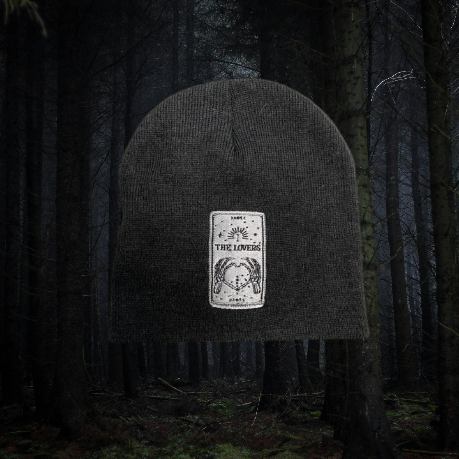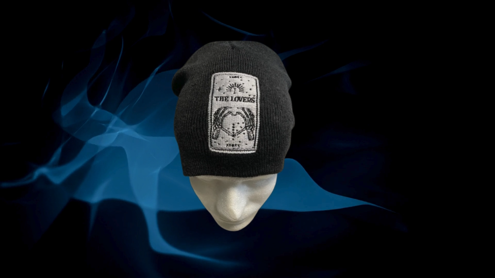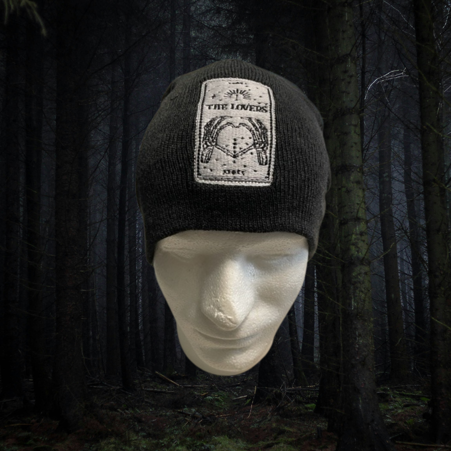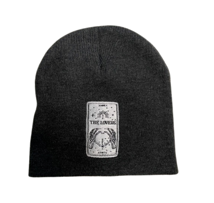 Embellished with intricate embroidery, this beanie hat pays homage to the iconic 'The Lovers' tarot card. Crafted from premium materials, this cozy skull cap offers warmth and style for those chilly days. The striking embroidered design on the front is sure to turn heads, making it a statement accessory for any outfit. Measuring approximately 10 inches (25.4 cm) in diameter, this one-size-fits-most beanie provides a snug yet comfortable fit. Whether you're hitting the slopes or just running errands around town, this embroidered beanie is a must-have for your cold-weather wardrobe. Embrace your unique sense of style with this eye-catching and functional accessory. Features: Embroidered skeletal design Material: 20% Acrylic 80% Polyester Size: One size fits most. Care Instructions: Machine Washable Stylish Design: Embroidered with 'The Lovers' motif, this beanie hat adds a touch of edgy fashion to any outfit. Comfortable Fit: Made from high-quality materials, this skully beanie is designed for a snug and comfortable fit. Versatile Accessory: Perfect for casual wear or outdoor activities, this beanie can be worn year-round. Easy Care: Machine washable for hassle-free maintenance and long-lasting wear. One Size Fits Most: With its stretchy construction, this beanie hat accommodates most head sizes.