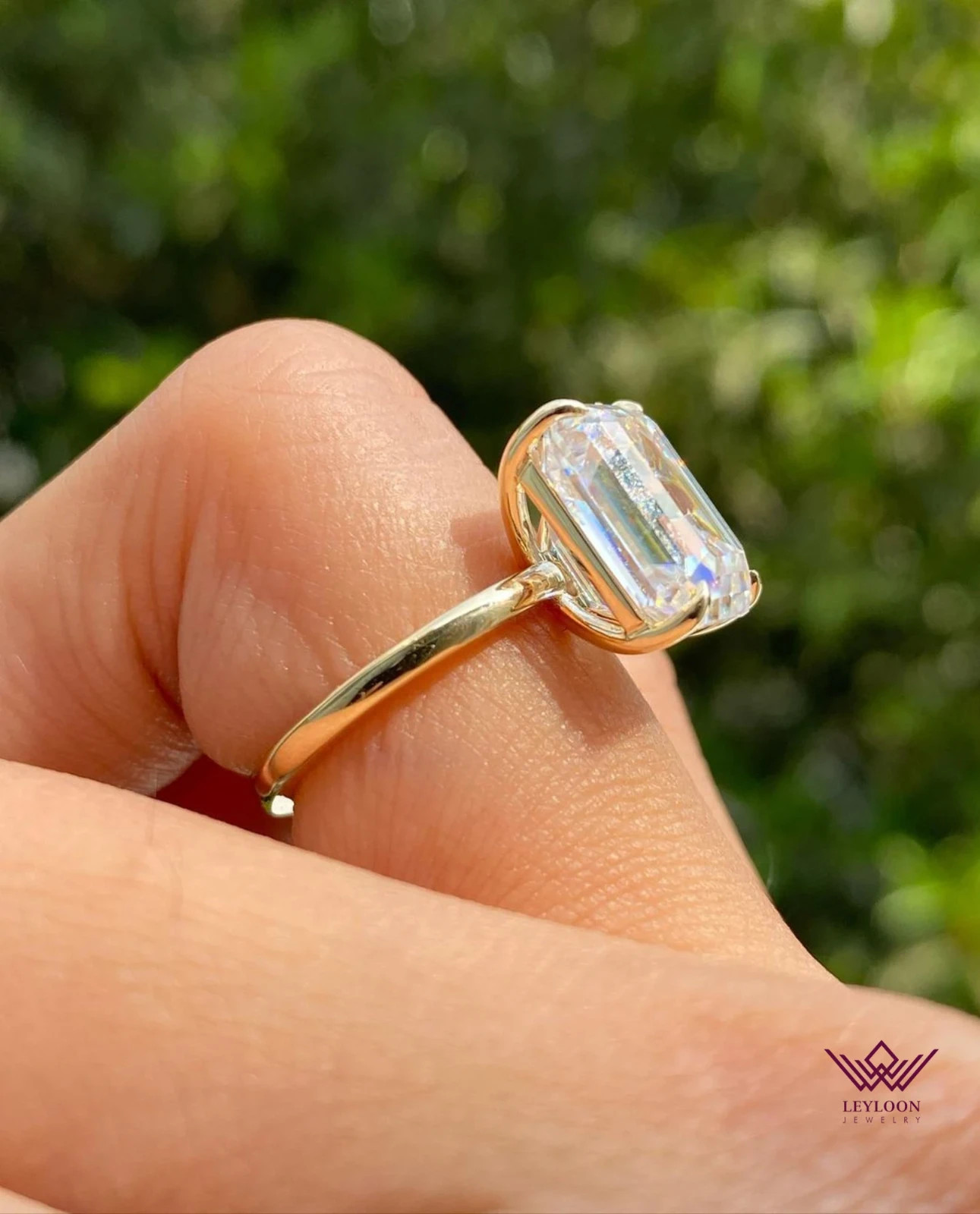 Emerald Cut Solitaire Basket D Color VVS Moissanite Ring ๐ Available Metals: A) 5X Platinum Vermeil, B) Solid 10K Gold, C) Solid 14K Gold, D) Solid 18K Gold, E) Solid 950 Platinum. โ HIGHEST QUALITY Certified White Gold, Rose Gold, Yellow Gold & 950 Platinum. (Not Trash). ๐ Ring Size: 2,3,4,5,6,7,8,9,10,11,12,13,14,15,16 and anything between these ring sizes available. It could be 1/4, 1/2, or 3/4. We Fit It to your Exact Finger Size no matter what size you want. ๐ Main Stone: HARDEST Quality VVS GRA Certified Hand Cut Moissanite (Pass Diamond Testers) โจ Side Stones: Premium Quality VVS Moissanite. (Pass Diamond Testers) ๐ Certified: GRA - GRC ๐ Polish: Excellent Polish. Shiny & Clean for Maximizing Sparkles. โฆ Cut: Hand cut Excellent cut & Symmetry with Crisp & Sharp Edges/Corners. ____________________ ๐ 100% Handmade with GORGEOUS & Accurate Details. Itโs an Art, not only a Valuable Material. ๐ 60 Days Money Back Guarantee for Any Reason even if you don't Fall In Love with it. ๐คฏ FREE LIFETIME Main Stone Warranty & Side Stone Replacement. (No Color Change). ๐ FREE LIFETIME Jewelry Cleaning & Re-plating. ๐ Hypoallergenic. Skin Friendly. Doesnโt cause any type of Allergies. ๐ Customizable with/to Your Favorite Stone/Jewelry Type & Shape. ๐ FREE STUNNING Random GIFTS On Every Order (we sell them for +$200 up to over +$700). ๐ฅฐ Amazing Wooden Gift Boxes for Your Main Jewel & its Gifts. ๐ฅณ Gift Wrapping Available (we wrap with no tags or receipts, ready to present). ๐คฉ VIP Customer Service to Make Your Dreams Come True in the Most Fantastic Way. ๐ FREE SUPER FAST FedEx Express Shipping. ____________________ ๐โ + Our 5X Platinum Vermeil: Platinum is 9.4 times RARER & slightly more DURABLE than gold. Rings with platinum end up more EXPENSIVE than gold because the DENSITY of platinum is a lot HIGHER and the QUALITY is EXTREMELY PURER. Rings THICKLY plated FIVE TIMES with platinum offer MUCH STRONGER PROTECTION against wear and scratches than gold plated jewelry. Therefore they LAST the LONGEST while giving you a SHINY LOOK ALL THE TIME. ๐โ + Our Rare Stone Quality: Here you have the NATURAL looking color of the diamonds in a RARE size with extraordinary VVS1 clarityโฆ Weโre offering the GREATEST QUALITY and VALUE at the BEST PRICE with this design by using very SPECIAL types of GRA Certified Moissanite stones. Natural diamonds in this color, clarity and size are super rare and very hard to find. Some of them easily cost over $10,000 per carat. (please message me for natural diamonds like this color, size and shape so I can give you the accurate price based on your preferences) ____________________ ๐ข๐๐ FREE FAST EXPRESS SHIPPING Processing + Shipping = Receiving Time PROCESSING: Only 1 available. This ring will be shipped within 48 hours. (Other sizes require customization for 2-3 weeks. ) SHIPPING: 2-6 days via FedEx Express for FREE โ Youโll get updated with the tracking code, once your package is shipped. โ We ship with insured FedEx only which is very secure. โ An adult signature is required at the time of delivery. _____________________ โ๐๐ CUSTOMIZATION/PERSONALIZATION: Custom orders with me are SUPER EASY & COMFORTABLE, no matter if youโve never done it before or youโve done lots of them. ๐ค I break down everything into small steps. And we go through the steps one by one together. On each step, youโll get to pick or guide me from the options I represent. ๐ Once we get to the end, your dream comes true. ๐คฉ๐ Because every single detail is just exactly what you want. ๐๐ ๐จ HOW TO DESIGN YOUR RING: A โ Send me some/one image similar to your idea. Or tell me whatโs your favorite shank, profile or stone? So I can show you some options to choose from. B โ Next, I will start designing it right away. Iโll send you some screen shots from what I designed. We can adjust any part of it together, until itโs exactly the way you want it to be. C โ After we get to the ideal conclusion, Iโll render several Ultra High Quality 3D images and a 4K video, so you see what the end result is gonna look like in reality. D โ The moment you approve everything, we start making it. Once itโs finished, weโll ship it the same day. + 3D IMAGE SAMPLES: Before you order yours, you can ask me for some samples of the 3D rendered images and videos. Youโre gonna absolutely love the quality, because they look like real rings. ๐คฉ๐ + Designing your dream ring with me is gonna be a fantastic experience. While you just sit and order, youโll watch how I take care of everything from your idea to the end product in the SIMPLEST & GREATEST way possible.โ โ------------ ๐ AVAILABLE GEMS: All stones are available - Colorless & Colorful Moissanite or Simulated Moissanite. Natural & Lab Grown Diamonds in Colorless or Colorful. Natural and Lab made Emerald, Ruby, Sapphire, Amethyst, etc. Just ask! ๐ฅ AVAILABLE METALS: All metals are available - 925 Sterling Silver, 5X Platinum Vermeil, 9K Solid Gold, 10K Solid Gold,14K Solid Gold, 18K Solid Gold (in Rose, White or Yellow), Platinum 950. ๐ AVAILABLE MATCHING PIECES: We can make matching pieces for this product. Engagement Rings, Bridal Sets, Wedding Bands, Earrings, Studs, Hoops, Bracelets, Bangles, Necklaces, Pendants, and anything youโd dream of. We can design all to set with this item. ๐จ๐จ๐ง๐ฆ AVAILABLE OTHER JEWELRY: We make jewelry as per occasion and celebration like birthdays, birth months, anniversaries, motherโs day, valentine's day, fatherโs day, memorials, thanksgiving, zodiac signs, graduation days, and many more per your request. ____________________ โโโโโ 5 STAR PRISTINE PROMISES: โฆ๏ธ 100% Satisfaction Guaranteed โฆ๏ธ Ethically Sourced โฆ๏ธ FREE Lifetime Ring Resizing โฆ๏ธ FREE Complimentary ENGRAVING โฆ๏ธ 100% Conflict Free Mater
