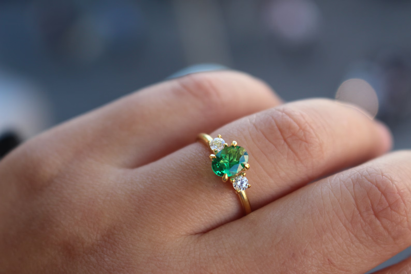 This Emerald Engagement Ring is a stunning piece made with 925 Sterling silver and plated with Yellow Gold. The oval-shaped main emerald stone is beautifully accented by two Moissanite stones, adding a touch of sparkle to the vintage-inspired design. Perfect for special occasions like engagements, weddings, and anniversaries, this ring exudes beauty and nature themes with its exquisite craftsmanship and engraved details. Handmade in India, this ring is a unique and exquisite choice for anyone looking for a beautiful and meaningful piece of jewelry.