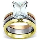 we order Friday ship Monday order Tuesday ship Thursday you get before expected date USA customers ignore expected date you will get in just a few days as have an office also in USA SPARKLING 11CT 12,9MM STONE SIMULATED DIAMOND EMERALD CUT PRONG SET SITS IN THE MIDDLE IN STAINLESS STEEL 316l WHICH WILL NOT TARNISH OR FADE . SET OF RUSSIAN WEDDING RINGS 3MM PER RING ROSE GOLD PLATED AND 18KT YELLOW GOLD PLATED HEAVILY ELECTROPLATED ON STEEL BASE THESE FIT TOGETHER PERFECTLY GOLD ON STEEL LASTS total pure quality