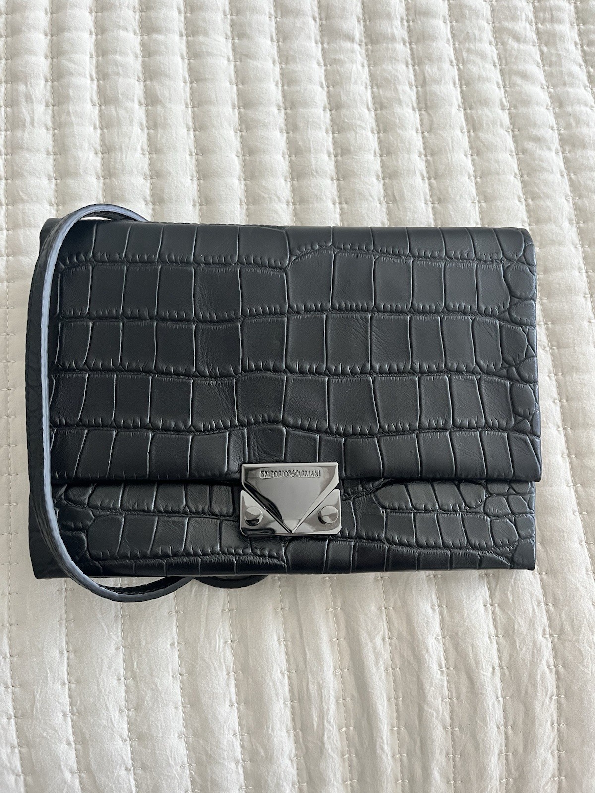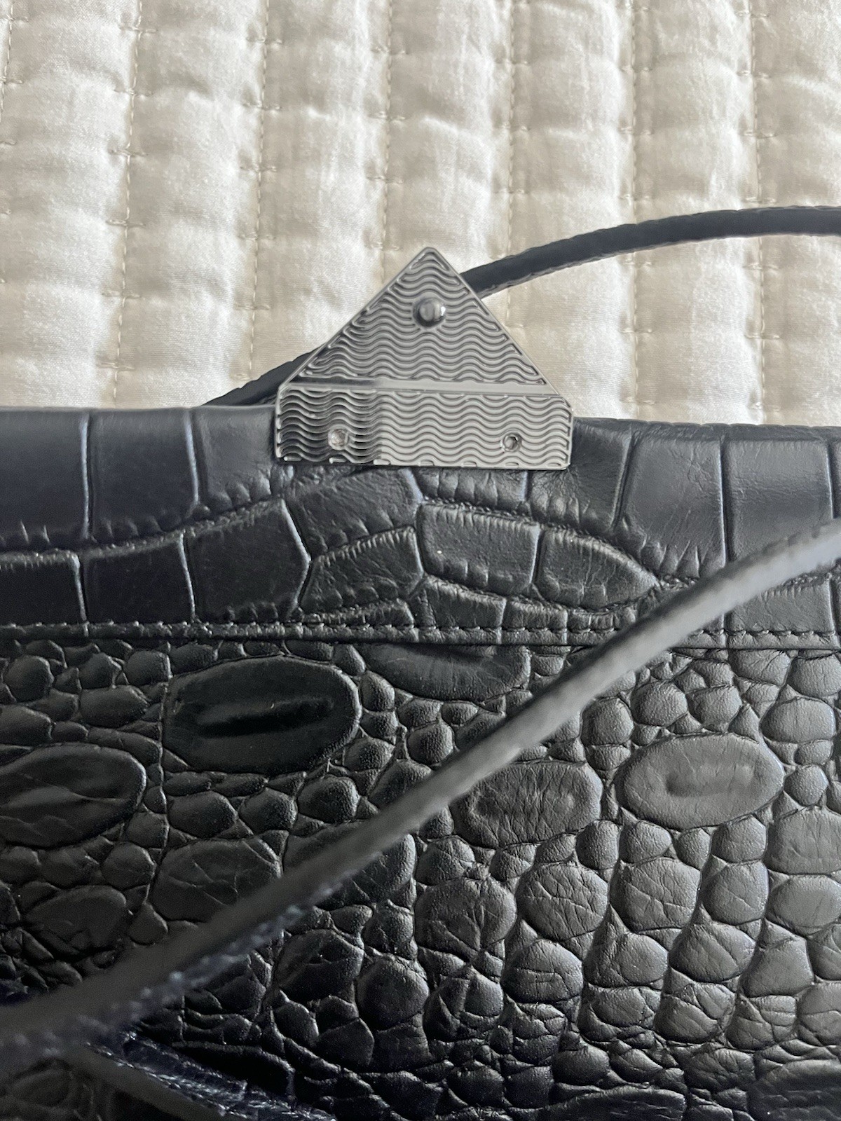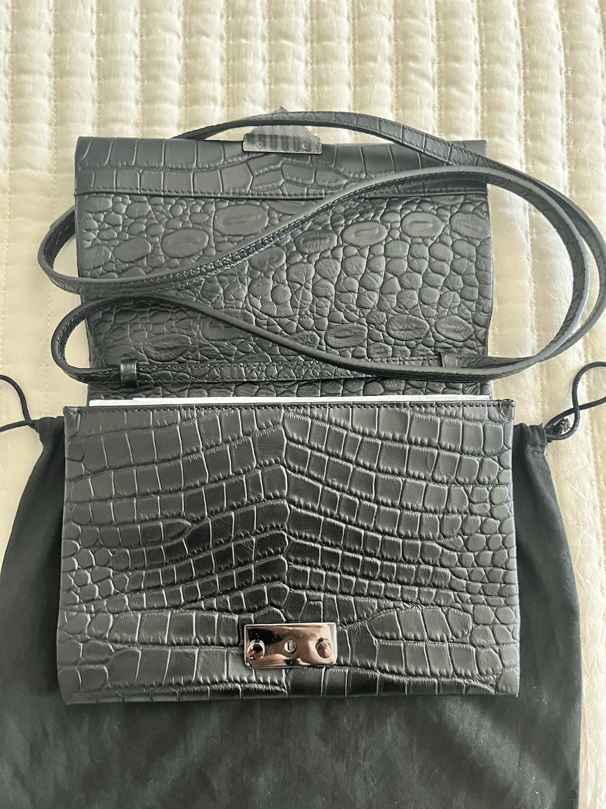 ✅COLOR: Black ✅ Bovine leather ✅ zipper pocket , fabric lining ✅Detachable strap with 22" drop for shoulder or crossbody wear ✅9” (L) x 6 1/2" (H) x 1.2” (W) ✅Can be used as clutch or crossbody ✅Dust bag included ✅Style CA 37360