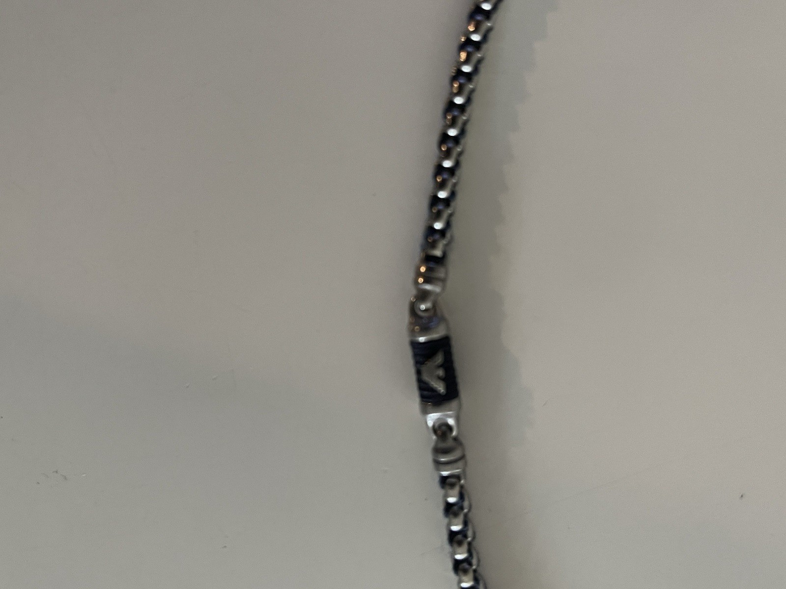 20 inch necklace with Emporio Armani sign in the middle of the necklace. The Emporio Armani sign is a little loose and could use regluing.