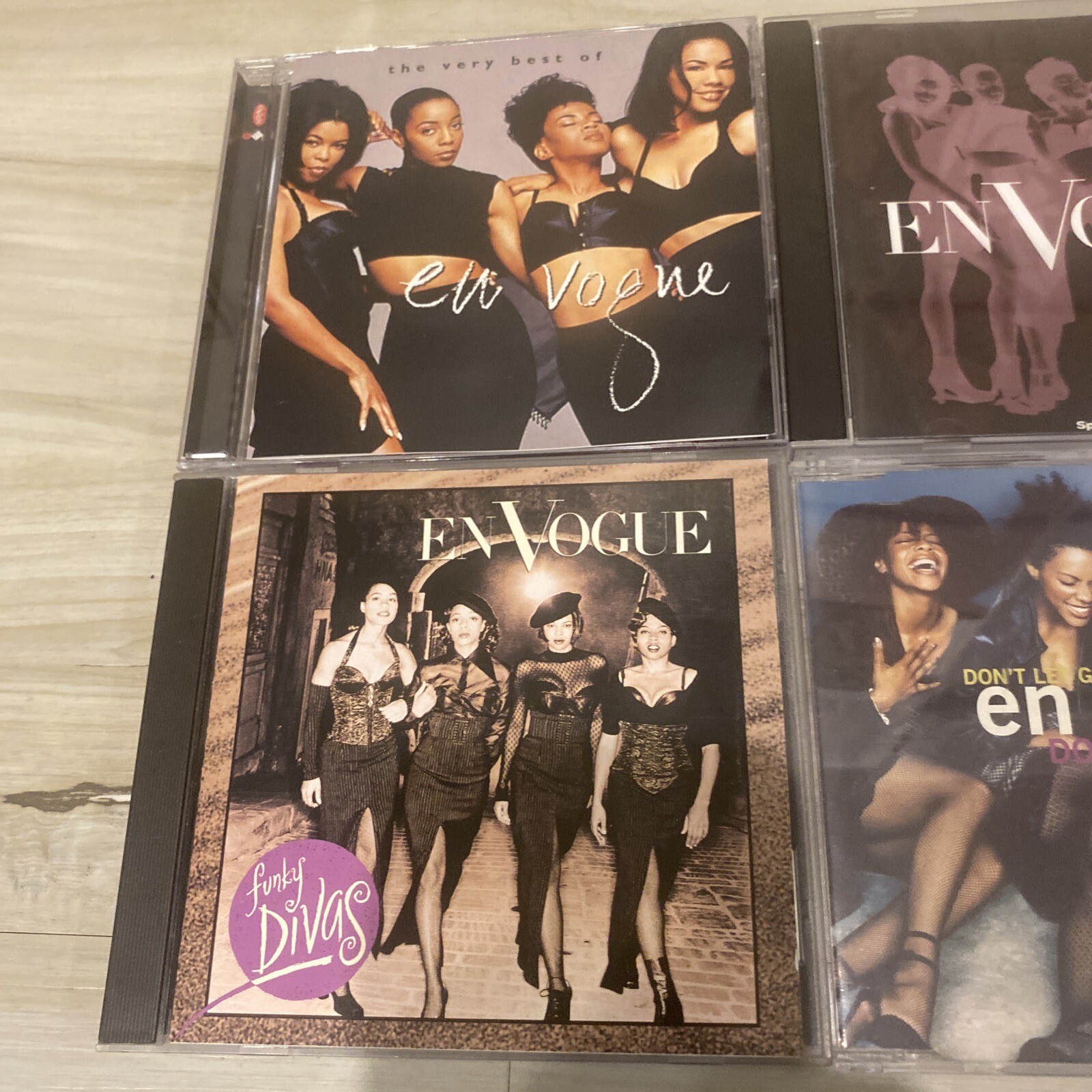 This En Vogue CD LOT includes the UK Import of their hit song "Don't Let Go (Love)," as well as "Runaway Love" and other tracks from their Best Of album. The CD is in great shape and has been well taken care of, with no scratches or cracks on the case. The CD features the iconic vocals of En Vogue, who were pioneers of the 90s R&B genre. This collection of their best hits is perfect for any fan of the group or anyone who loves soulful and funky music. The CD comes with an inlay in very good condition and was made in the United Kingdom.