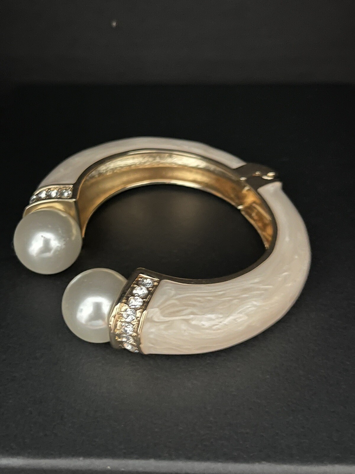 Occasion:Birthday, Mother's Day, Anniversary, Valentine's Day, WeddingBrand:Fashion JewelryClosure:HingeCountry/Region of Manufacture:UnknownColor:IvoryMain Stone Shape:RoundStyle:BangleCountry of Origin:UnknownMain Stone:PearlType:BraceletMetal:UnknownMaterial:EnamelMain Stone Color:Ivory