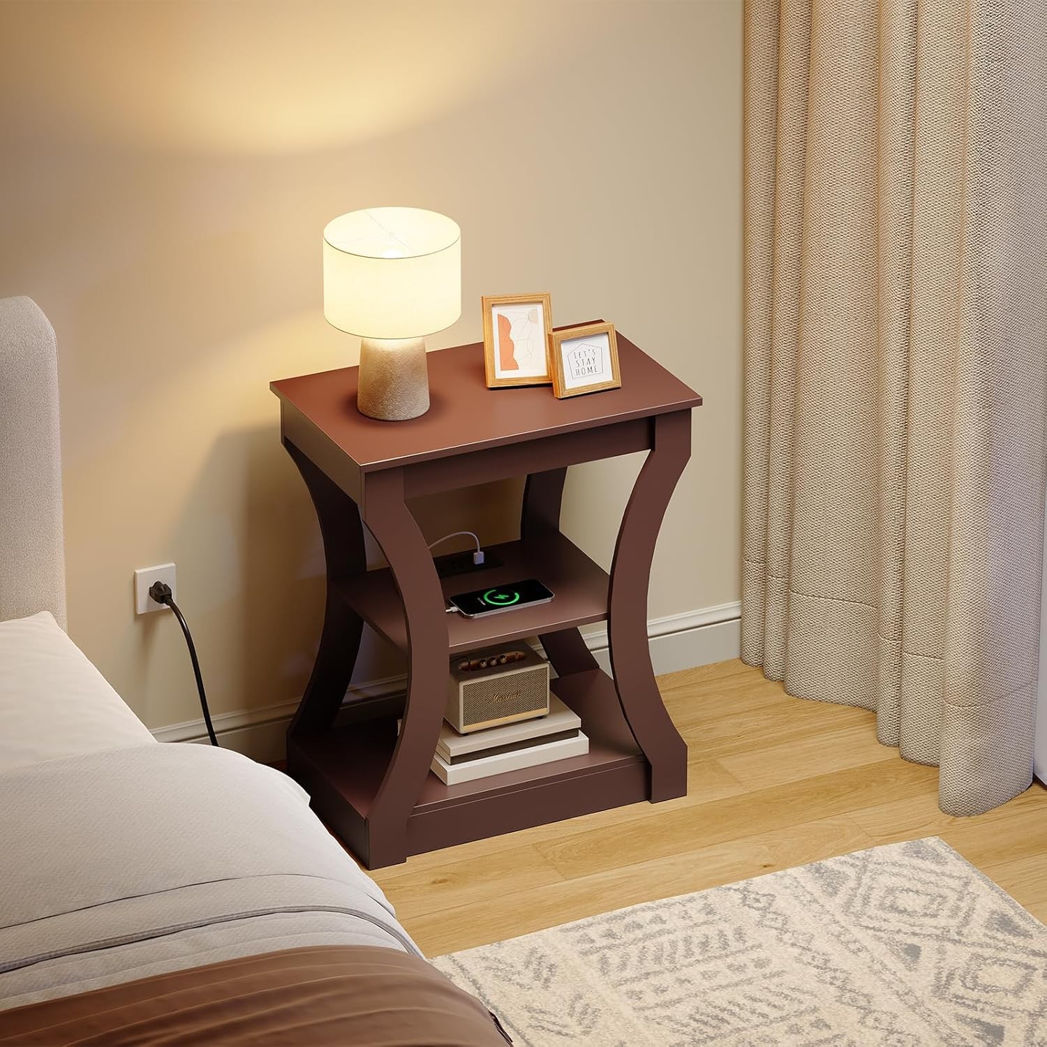 Free eBay listing template designed by dewiso.com End Table set of 2 with Charging Station, Side Table with USB Ports and Outlets, Nightstand, 3 Tier Bedside Table with Storage Shelf for Living Room, Bedroom, small space, Cherry ETWA53E01S2 FREE AND FAST SHIPPING! About this item Convenient Charging Station: The side table has a power strip with 2 AC outlets, 1 USB, and 1 Type-C port, meeting various charging needs efficiently and safely. The strip is neatly placed on the second layer, saving space and keeping the desktop tidy Fluid Curves, Illuminating Spaces: Breaking from traditional bedside table rigidity, the arcing sides softly embrace, reshaping with contemporary elegance and artistic touch. It fits seamlessly into modern, Nordic, and minimalist luxury home styles Versatile Table: Measuring 19.7"L x 11.8"W x 23.6"H, this compact end table is space-efficient and easily movable. It's a versatile companion for sofas , bedside , office, or as a balcony tea station, fitting seamlessly into living rooms, bedrooms, and studies Robust Structure: Crafted from premium engineered wood, this coffee table is robust and enduring with the desktop holding up to 66 lb, while the other shelves supporting 33 lb. The weighted base enhances stability, ensuring no wobbling during use Easy Assembly: With a simple structure, the nightstand is easy to assemble, requiring no professional tools. Labeled parts, a detailed assembly guide, and all the necessary tools are provided, you'll set it up quickly and enjoy its convenience in no time Product We offer a 30-Day Return Policy on items which you are not completely satisfied with. You have the option for a full-refund or an exchange of the item. No returns are available on items shipped outside of the US . Shipping We offer Free Shipping to the US and ship within 2 business days of payment, usually sooner. We use UPS express shipping. That's why your products are usually delivered within 3 days . Contact We try our very best to make sure every customer is completely satisfied. If there's a problem , message us! We're happy to help. 24/7 live chat available.