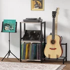 end table with guitar stand Multifunction End Table with Guitar Stand:This is a really great design for a record player stand that could work great as any type of end table as well,the guitar stand wider cradle arms acommodate most guitar shapes,it can hold up to two different insturments vertically,including acoustic,electric guitars,bass,ukulele and banjo. Record Player Stand with Vinyl Record Storage:With 3-tier Storage Shelf,the record player stand can help you keep vinyl record player,vinyl records,albums,guitar tuner,guitar amp and guitar accessories,the 3rd open storage shelves can hold all kinds of record and media essentials up to 50 albums. Two Combinations:With flexible design,the stand can be customized in two different configurations for your specific room needs!it can not only serve as a record player stand,but it also doubles as a great end table or side table for small spaces. Sturdy and Stable:The record shelf is made of strong wooden boards,thicker irons and adjustable feet which is friendly touch,long-lasting,sturdy and secure,the holder arms are made of thick rubber cover and steel components,you can adjust the distance between the two holder arms easily,it won't wobble when placing guitars on the rack. Easy to Assemble:The record player stand with guitar stand is extremely easy to put together,all the parts are labeled and coordinated with the instructions,the directions are simply and easy to follow,you can assemble it within 20 minutes. Service and Support:One year quality guarantee,if you have any questions about this record player stand,guitar stand,please feel free to contact us,our professional customer service team will get back to you within 24 hours.