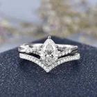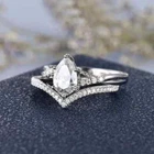 Engagement Ring Bridal Set 14K White Gold 2.50CT Pear Cut Moissanite Size 8.5