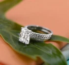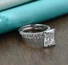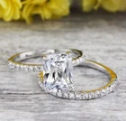 Engagement Ring Set 14k White Gold 3.00Ct Radiant Cut White Moissanite Size 8