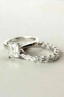 Engagement Ring Set 2.67Ct Emerald Cut Diamond Simulated 14K White Gold Size 7.5