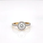 This engagement ring features 1.2 Carat of main centre Lab Grown Diamond/ Solitaire with approx 0.27 Carat of diamonds creating a halo and pave, set in solid 14k yellow gold. The ring is hallmarked and certified by IGI, with a Halo and Pave setting and a round shape. All diamonds, including the centre Solitaire, are a white diamond with an E colour grade and a very, very slightly included (VVS1) clarity grade. Handmade in India, this ring is designed for the perfect engagement occasion, showcasing excellent cut quality and a touch of yellow gold to add a unique and stylish touch to the design.