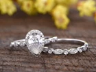 Features: Engraved, Nickel-Free, Stackable, Handcrafted Type: Ring Secondary Stone: Diamond Color: White Setting Style: As Seen in Picture Theme: Beauty, Bohemian, Ethnic, Healing, Love, Luck, Special Occasion, Halo, Love & Hearts Metal: White Gold Main Stone: Moissanite Main Stone Color: White Base Metal: Gold Main Stone Creation: Natural Style: Statement Metal Purity: 14k Number of Gemstones: As Seen in Picture Signed: Yes Gemstone Clarity Grade: Eye Clean Personalize: No Handmade: Yes Occasion: Anniversary, Birthday, Christmas, Engagement, Graduation, Christening, Confirmation/Communion, Mother\'s Day, Valentine\'s Day Country/Region of Manufacture: India Main Stone Shape: Pear Brand: Handmade Cut Grade: Excellent Shape: Engagement Set Material: Diamond Sizable: Yes Country of Origin: India Band Width: 2.3 Ring Size: 4, 4.5, 5, 5.5, 6, 6.5, 7, 7.5, 8, 8.5, 9, 9.5, 10, 10.5, 11, 11. Seller Warranty: Yes