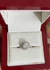 Brand new. Bought it, but never gave it. Appraised at $4,400. Comes in a box with all the paperwork, including IGI Diamond Certificate.