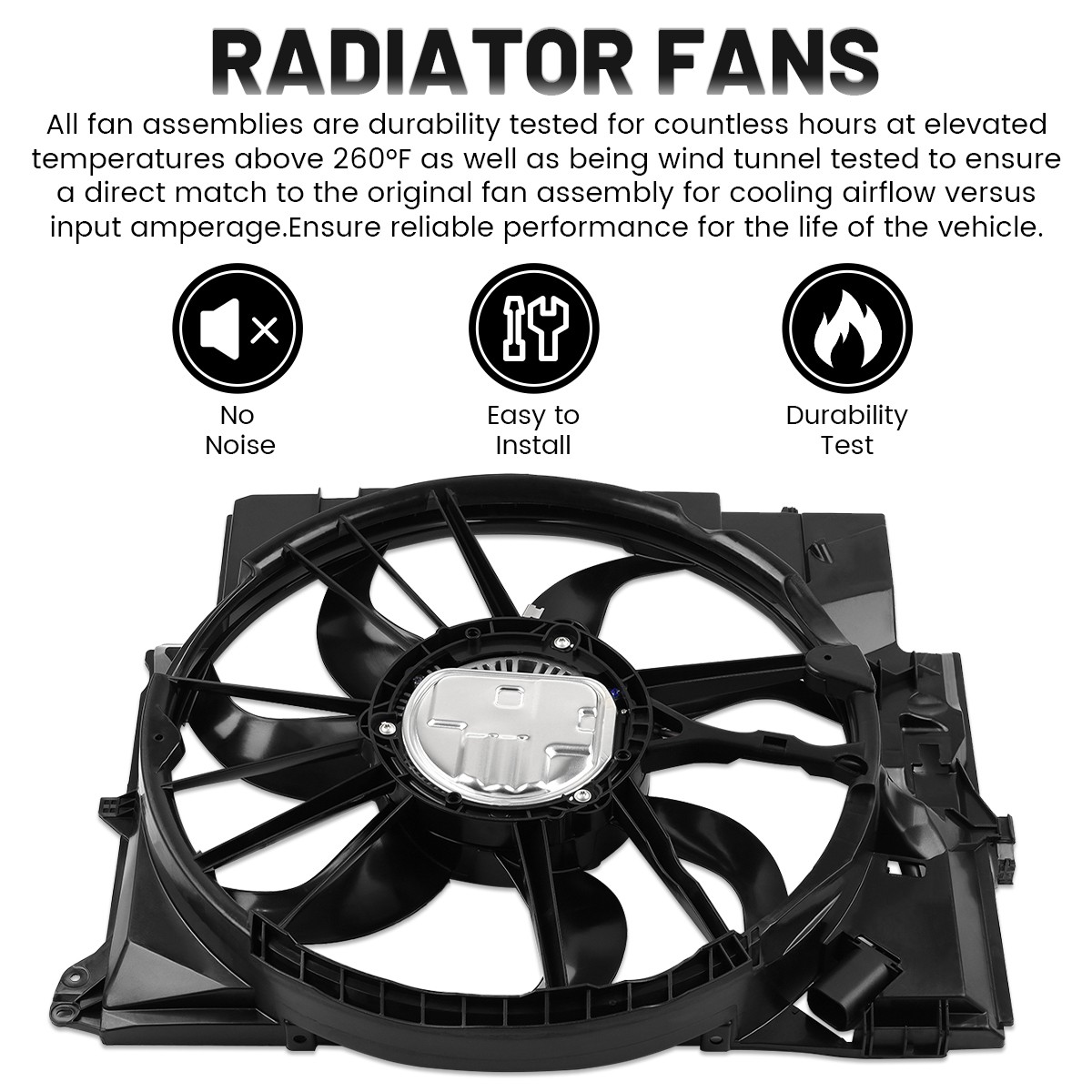 Product Description 1PC Engine Radiator Cooling Fan Assembly for BMW 135I 335D 335I 335IS 335XI X1 Z4 17427545366 Features: 1.Drop in replacement for easy installation.All units are test-fitted into the corresponding condenser to ensure precise, consistent fit. Redesigned shrouds and brushless motors, simplify installation and increase fan performance. 2.Ideal replacement.This engine cooling fan assembly was precision-engineered to match the fit and performance of the stock radiator fan assembly on specific vehicles. 3.Statically and dynamically balanced preventing assembly misalignment and excess noise for quiet operation.Shrouds are ribbed which increase strength and rigidity of the entire assembly under load forces from airflow thrust and rotating blade torques. 4.All fan assemblies are durability tested for countless hours at elevated temperatures above 260°F as well as being wind tunnel tested to ensure a direct match to the original fan assembly for cooling airflow versus input amperage.Ensure reliable performance for the life of the vehicle. 5.Trustworthy manufacturing for far less than same part at the dealership. Specifications: Material:Plastic Color:Black Installation position:directly behind radiator Quantity of Blade:7 Connector Terminal Quantity:4 pin Voltage:12V Fitment Type:Direct Replacement Part Numbers: 620981, 620-981, 17427545366, 17425A3F109, 17 42 7 545 366, 17 42 5 A3F 109, BM3115116, 623430, FA71608, 76390 Fitment : For 2008-2013 BMW 135i Base Convertible 2-Door For 2008-2013 BMW 135i Base Coupe 2-Door For 2009-2010 BMW 135 Base Hatchback 2-Door For 2009-2010 BMW 135i Base Hatchback 4-Door For 2012-2013 BMW 135i M Sport Coupe 2-Door For 2009-2011 BMW 335d Base Sedan 4-Door For 2007-2013 BMW 335i Base Convertible 2-Door For 2007-2013 BMW 335i Base Coupe 2-Door For 2007-2013 BMW 335i Base Sedan 4-Door For 2012-2013 BMW 335i Exclusive Convertible 2-Door For 2012-2013 BMW 335i Exclusive Coupe 2-Door For 2012-2013 BMW 335i Luxury Sedan 4-Door For 2008-2010 BMW 335i M Sport Sedan 4-Door For 2012-2013 BMW 335i M Sport Sedan 4-Door For 2012-2013 BMW 335i Modern Sedan 4-Door For 2012-2013 BMW 335i Sport Sedan 4-Door For 2009-2011 BMW 335i xDrive Base Coupe 2-Door For 2009-2011 BMW 335i xDrive Base Sedan 4-Door For 2011-2011 BMW 335is Base Convertible 2-Door For 2011-2011 BMW 335is Base Coupe 2-Door For 2008-2008 BMW 335xi Base Coupe 2-Door For 2007-2008 BMW 335xi Base Sedan 4-Door For 2014-2014 BMW X1 Business Sport Utility 4-Door For 2013-2013 BMW X1 sDrive20i M Sport Sport Utility 4-Door For 2014-2014 BMW X1 sDrive20i Sport Sport Utility 4-Door For 2013-2014 BMW X1 sDrive20i Sport Utility 4-Door For 2013-2014 BMW X1 sDrive20i X Line Sport Utility 4-Door For 2015-2015 BMW X1 sDrive20iA Sport Utility 4-Door For 2013-2013 BMW X1 sDrive28i Sport Line Sport Utility 4-Door For 2013-2015 BMW X1 sDrive28i Sport Utility 4-Door For 2013-2013 BMW X1 sDrive28i X Line Sport Utility 4-Door For 2015-2015 BMW X1 Sport Line Sport Utility 4-Door For 2015-2015 BMW X1 X Line Sport Utility 4-Door For 2013-2013 BMW X1 xDrive28i M Sport Sport Utility 4-Door For 2014-2014 BMW X1 xDrive28i Sport Line Sport Utility 4-Door For 2013-2015 BMW X1 xDrive28i Sport Utility 4-Door For 2013-2013 BMW X1 xDrive28i Top Line Sport Utility 4-Door For 2014-2014 BMW X1 xDrive28i X Line Sport Utility 4-Door For 2013-2015 BMW X1 xDrive35i Sport Utility 4-Door For 2009-2016 BMW Z4 sDrive35i Convertible 2-Door For 2011-2016 BMW Z4 sDrive35is Convertible 2-Door Package Contents: 1 × Radiator Cooling Fan(as shown in the picture) Attention: The radiator cooling fan is an integral part of your car that is responsible for cooling the radiator of your car. The radiator cooling fan does this by either pulling or pushing air into the radiator keeping the radiator temperatures within the safe levels. A damaged radiator cooling fan is a determining factor in preventing your car from overheating. Below are the materials that you need along with the instructions on how to replace a radiator cooling fan. Step 1: Locate the Radiator Cooling Fan Locating the radiator cooling fan is the first step in replacing it. Turn off your car and allow it to cool off. Open the hood of your car and you will be able to see the radiator that is located at the back of the grill at the front portion of your engine compartment. The radiator cooling fan is attached at the back of the radiator through a mounting frame. Under the engine and the radiator is a sticking cylinder that is encased in a small casing. That is the radiator cooling fan motor that you may need to change or repair other than the radiator cooling fan itself. Step 2: Disconnect the Power Supply On the fan motor is an electric cable running towards the engine. Find the connector of the wires from your engine and from your radiator fan motor and disconnect it. Using two masking tapes with different colors, note the connection of the wires so that you will not have a hard time reconnecting the wires later. Step 3: Remove the Fan Housing Using a crescent wrench, remove the four screws located at each corner of the fan housing. Remove the fasteners at the sides of the fan housing as well. A radiator cooling fan housing is relatively large and you may need to remove all the obstructions like hoses and wirings so that you can extract the fan housing off your car hood. Hold the housing firmly and lift it off your engine compartment. Be careful in removing the fan housing to avoid damaging it. Place the fan housing on a clutter-free working table. Step 4: Remove the Radiator Cooling Fan and the Fan Motor The fan blade is either pinned or screwed to a shaft. With a screwdriver, loosen the fan blade and slide if off its shaft. You may need to remove a keeper that prevents the fan blades from moving up in the shaft up and down. As to the fan motor itself, remove it from the fan housing using a screwdriver. Step 5: Attach the Replacement Radiator Cooling Fan and Fan Motor Install the new fan