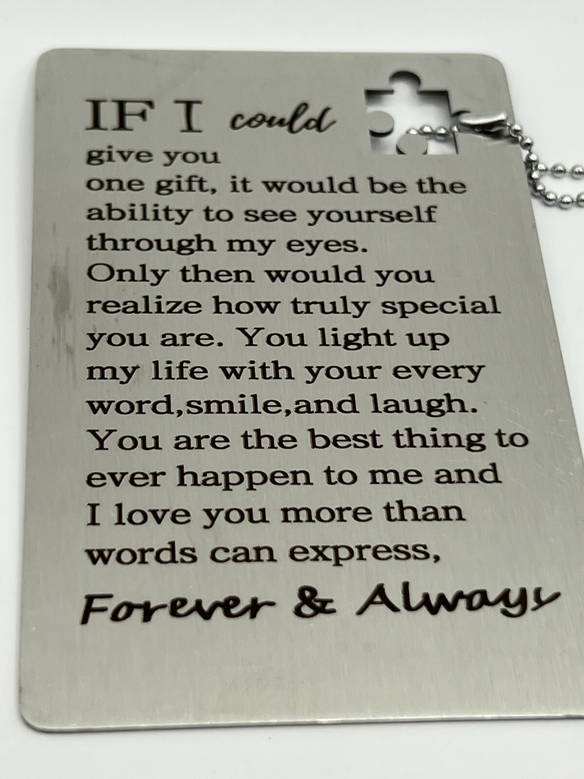 This engraved wallet insert is such a sweet and stylish gift! The sleek metallic design fits perfectly in any wallet, and the personalized message adds a special touch. Perfect for anniversaries, Valentine’s Day, or just because—it’s a unique way to show someone you care. My husband loved it!
