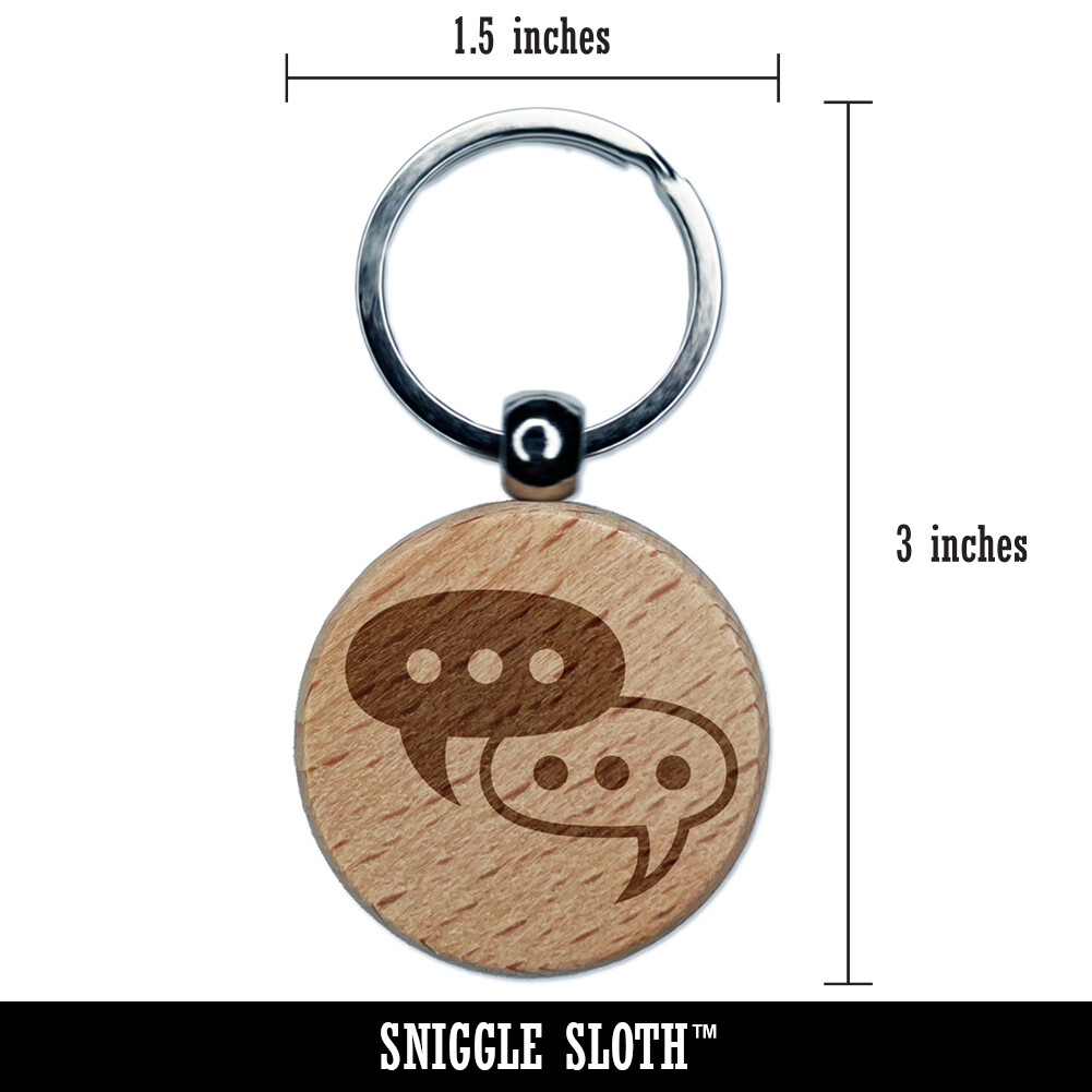 Engraved Wood Keychain with Chat Bubble Icon for Conversations