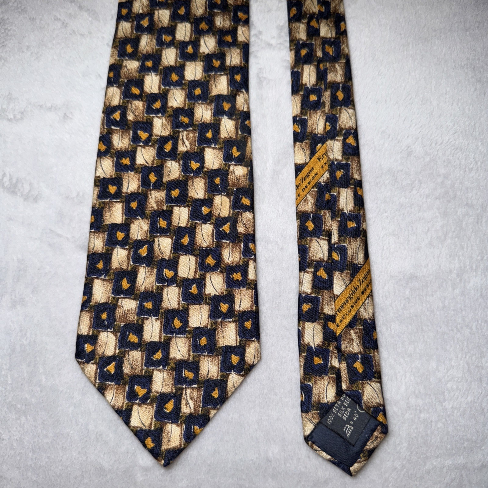 $ 47.52Italo Ferretti Men’s Tie Silvi Marina Hand Made Italy 100% Silk Orange Geometric