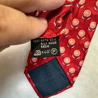 Ermenegildo Zegna silk tie features a sophisticated floral medallion pattern in shades of red, cream, and navy blue. Crafted in Italy from 100% silk, this accessory showcases a textured weave that adds depth to the vibrant red ground. The classic width and refined print make it an ideal choice for professional settings or special occasions. Measurements: • Width: 3.75" • Length: 58"
