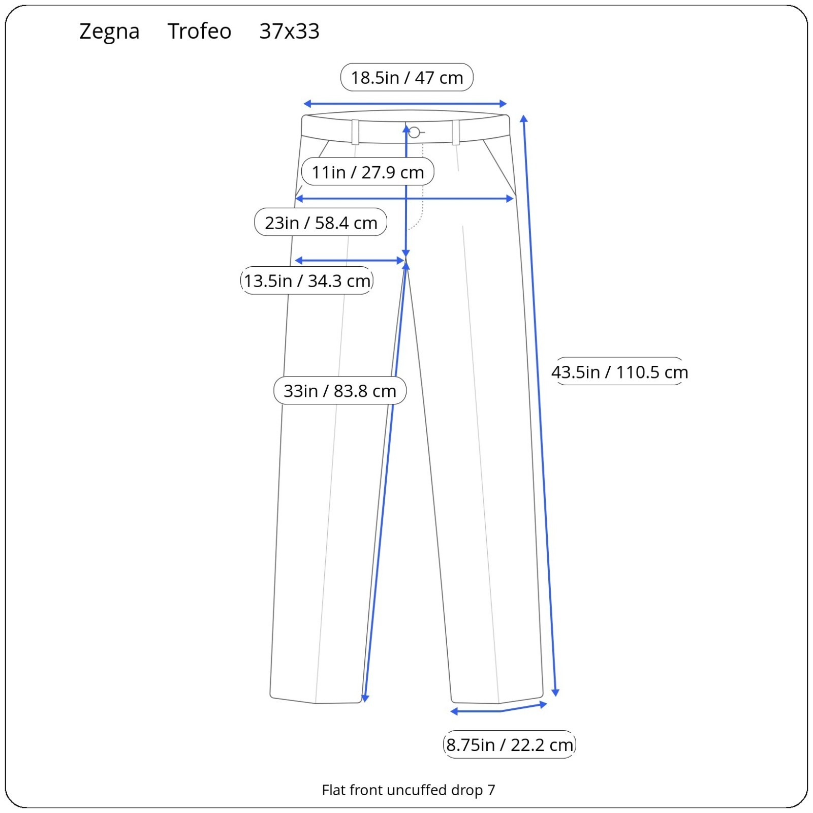 Size: 44r USA 54 Italy ****with 27-inch arm length**** and a jacket length of 30 inches. Pants: 37x33 drop 7 For complete measurements, see photos #2 and #3 Color: slate navy with blue cable stripes - strong charcoal undertones To see exactly how we measured, see the last series of photos. Extra fabric for adjustments: Waist: 2.5 inches Inseam: 2.75 inches Arms: 1 inch Condition: excellent condition. No holes, no snags, no smells, no stains. The only flaw found is light staining to the inside liner of the pants pocket. Full canvas, trofeo wool, light shoulder pads, flat front uncuffed Return policy: We offer free shipping and no returns. We can not afford to offer both in the highest return category on eBay. It becomes very expensive to mail out items for free for people to try on if they are not confident in checking the measurements in picture #2. If you prefer to have the ability to return the item and pay $12.95 shipping, please send us a message, and we can change the listing format to offer returns. The $12.95 shipping cost would break us out even in the case you needed to return the item. You must reach out before purchasing as a lot of our items are on consignment and we need to run the return option by the owner of the item for final approval. We ship the next business day after the payment is made.
