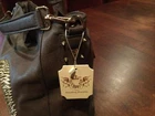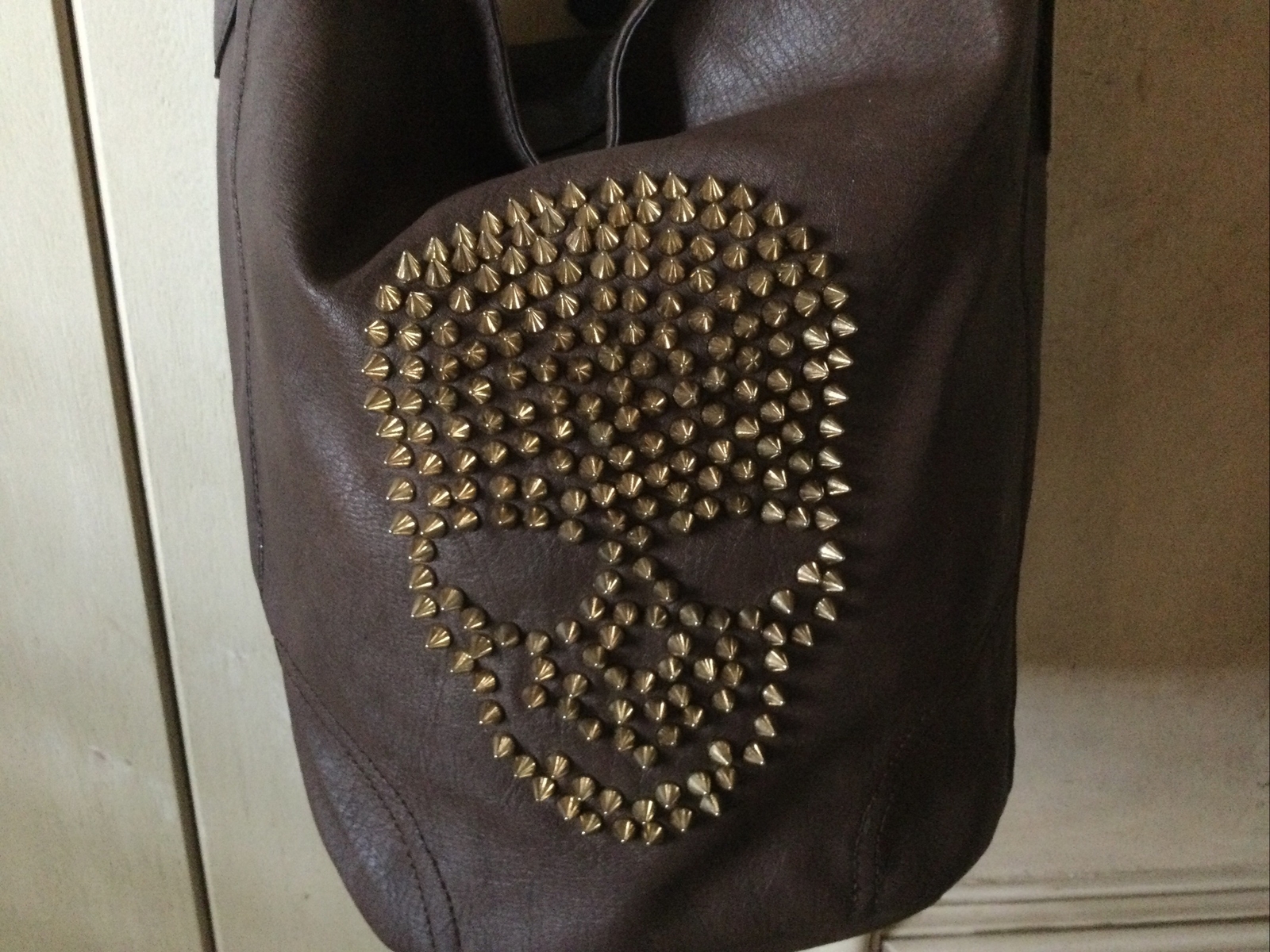 Handbag Republic Espresso Brown Leather Handbag. Gold Studded Skull Accents..