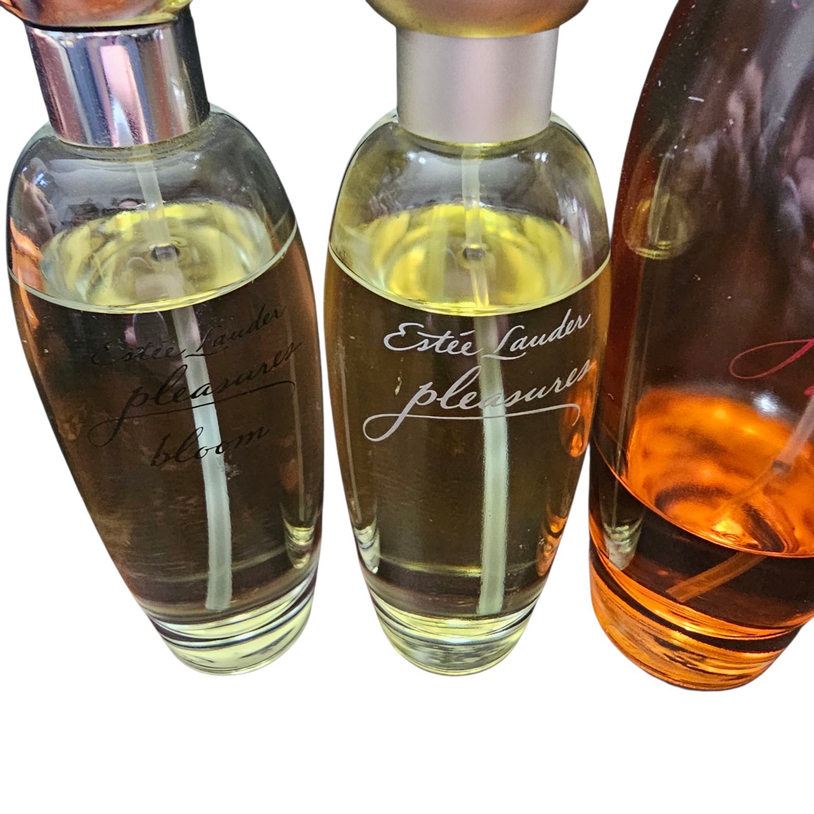 The Estee Lauder Pleasures Set of 3 Eau de Parfum includes the scents Delight, Original, and Bloom. pleasures original and bloom are in 1.7 fl oz bottles and Delight is in 3.4 see weight for each in photos ✨ Important Note: Older or discontinued beauty items (used or new) may have natural aging, such as discoloration, scent changes, or packaging wear. Please view all photos and descriptions carefully prior to purchase.