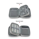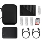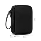 ①Structure: The first layer has one big mesh pocket for 2.5 inches hard disk organize, two medium mesh pockets for data cables; The second layer also has one big mesh pocket for 2.5 inches hard disk or power bank(the power bank's length is no more than 5.71 inches,width is no more than 4.13 inches, six small mesh pockets for USB Flash Drives. ②Premium Material:Outer material is PU Leather with portable handle,It's waterproof and durable, easy to clean.(Warmly notice:when you receive it ,Kindly put it in an airy place for a while. As it has a little PU Leather smell. The smell is from the texture,not hurt your healty). ③Safty Protection: Waterproof shockproof, dust-proof and wearable external hard drive protective case.Foam interlayer around prevent extrusion and collisions. ④Protect and Storage: Put your hard drives and small computer accessories into this storage case will not only keep them away from dust and humidity, but also make your work and life more tidy and refined ⑤Dimension and Guarantee- Outer size: 5.91x4.33x1.77 inch.It fits many brands 2.5 inches external hard drive.Kindly check your hard disk size before purchase,When you want to organize 1 hard drive and 1 power bank, Don't forget check power bank size(Length no more than 5.71", width no more than 4.13"). We can offer 1 year quality guarantee.Storage bag only(device and accessories are not included)