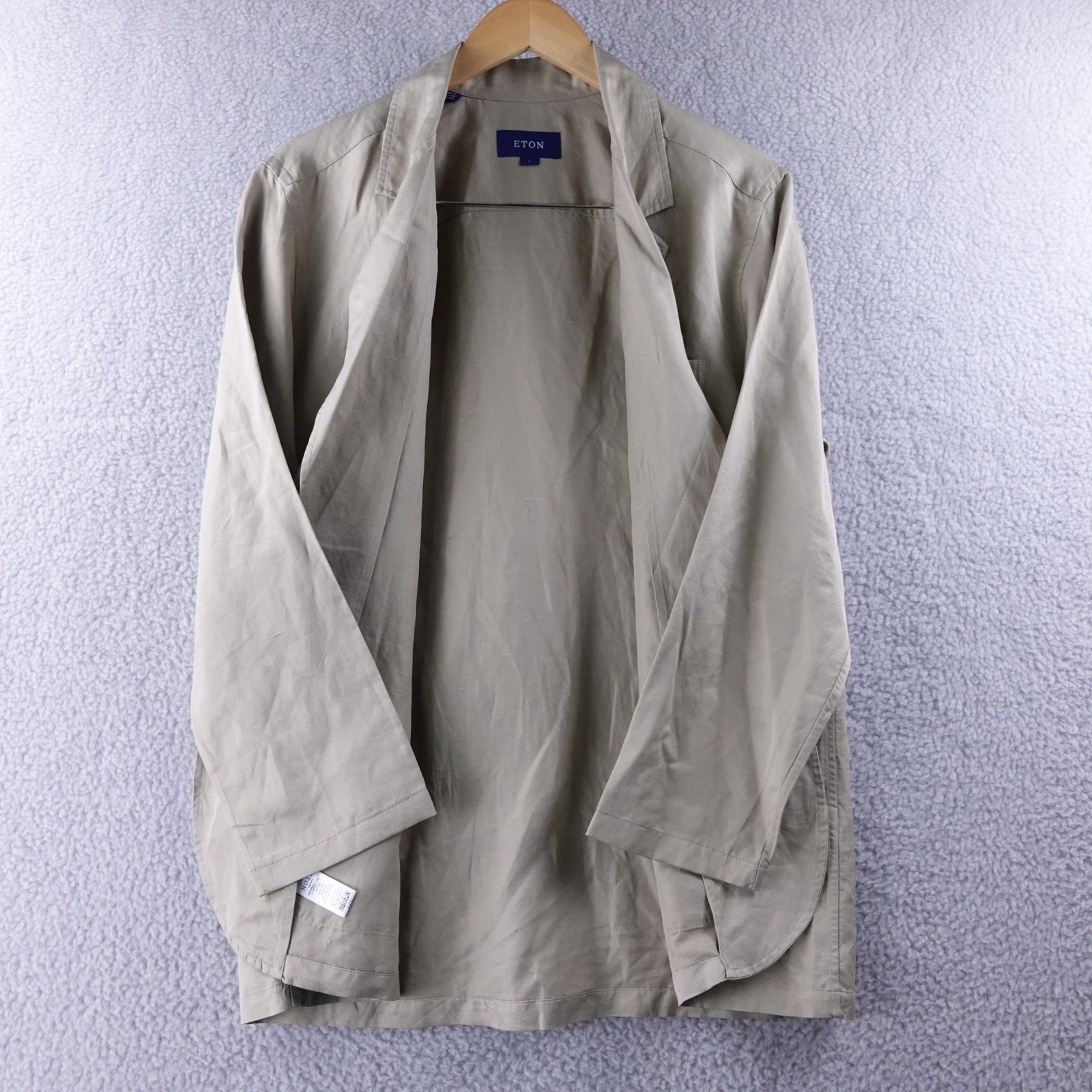Elevate your warm-weather wardrobe with this sophisticated Eton blazer. Crafted from a breathable linen blend, this jacket offers a relaxed yet refined silhouette perfect for any occasion. The classic notched lapel and two-button closure exude timeless style, while the chest pocket and flap front pockets add practical functionality. Imagine effortlessly transitioning from a casual lunch to an evening gathering, feeling comfortable and impeccably dressed. Type: Blazer Department: Men Material: Linen, Silk, Cotton Blend Pattern: Solid Fit: Classic Jacket Cut: Single-Breasted Jacket Front Button Style: Two-Button Occasion: Casual, Business Jacket Lapel Style: Notch Jacket Vent Style: Single-Vented Season: Spring, Summer, Fall Front Type: Flat Front Keywords: Eton blazer, mens jacket, linen blend, lightweight, spring fashion, summer style, smart casual, business casual, travel wear, outerwear, tailored, versatile
