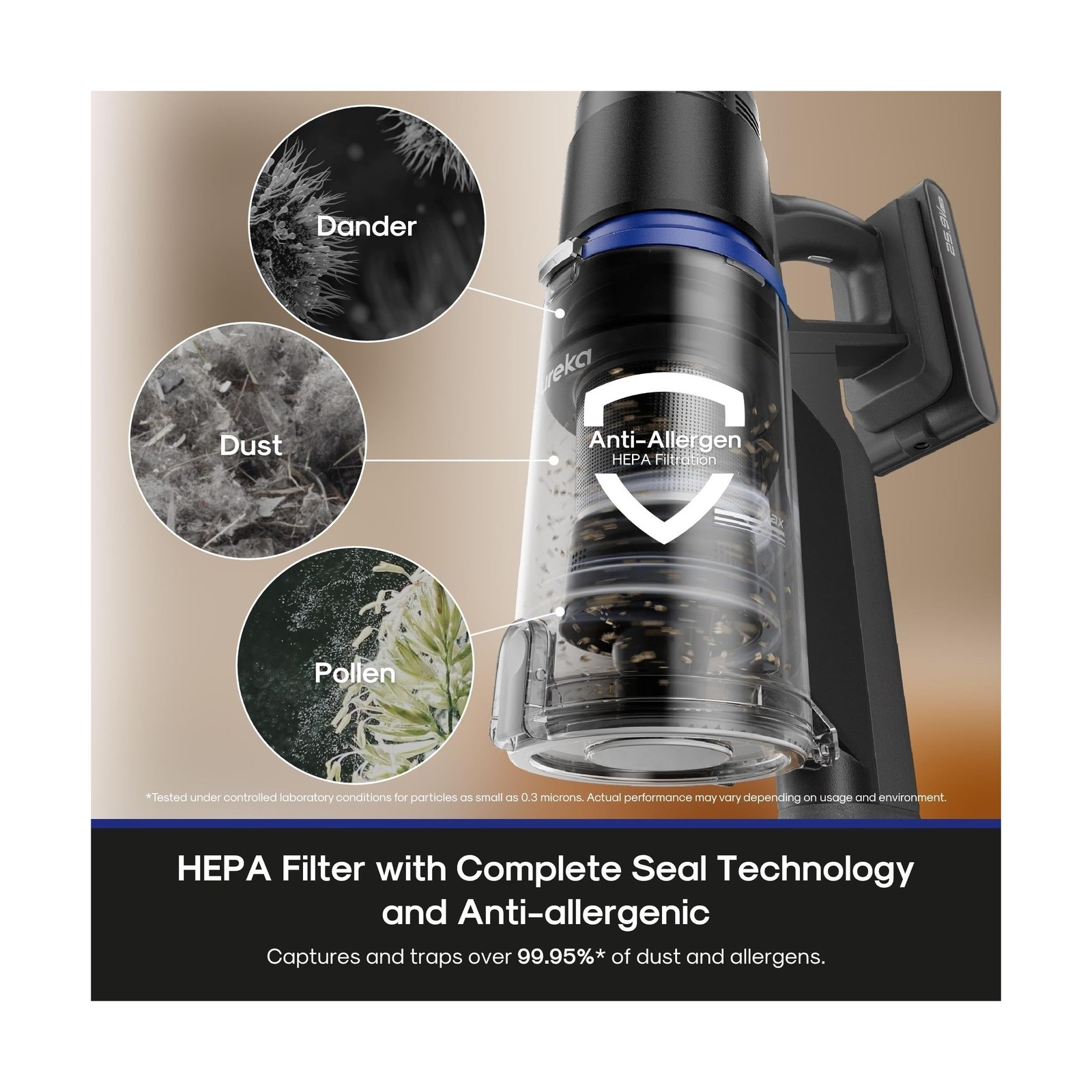 Eureka Cordless Vacuum Cleaner, Anti-Tangle Brushroll, Rechargeable Stick Vacuum, Lightweight for Carpet, Hard Floor, Pet Hair, Black NEC451BL Description Step up to smarter, deeper cleaning with the Eureka 451BL—a premium cordless vacuum that delivers more suction, more runtime, and more convenience than ever before. Features: Anti-tangle Nozzle: Special fins and dense comb-strips guide hair away in real time, eliminating manual cleanup. This maintains unobstructed roller operation at all times, ensuring powerful suction for deep carpets while preventing long-term entanglement damage to reduce the cost of replacing accessories. Smart Sense+React Technology: Monitor dust concentration in real time and automatically boost suction in high-pollution areas, while adjusting suction power and brush roll speed for different surfaces like hardwood, carpets, and tiles. Ideally suited for homes with mixed flooring, pets, or health concerns. Powerful Vaccum: 350W high suction removes deep-seated dust, pet hair, and debris in carpets. Its H13 HEPA filter captures 99.95% of microparticles and adsorbs odors. The fully sealed system prevents dust leakage and secondary pollution, protecting allergy sufferers. Uninterrupted Cleaning: With 60min runtime, it covers 1,614.35 sq.ft without mid-cleaning charging. The optional extra detachable battery (sold separately) enables unlimited runtime, resolving power anxiety and short-device-lifespan issues. Multiple scenes: Designed for versatility, it converts from an upright to handheld device and includes a crevice tool for multi-surface cleaning. Fingertip controls offer 3 power modes (LOW/AUTO/HIGH) to adjust suction for carpets or hardfloors. Product Details: Brand: Eureka Special Feature: Cordless, Detachable Battery, HEPA, Lightweight, Rechargeable, Washable Filter Filter Type: HEPA Filter Included Components: Accessory Kit, Adapter, Battery, Crevice Tool, Dusting Brush, User Manual Is Cordless?: Yes Brand: Eureka Special Feature: Cordless, Detachable Battery, HEPA, Lightweight, Rechargeable, Washable Filter Filter Type: HEPA Filter Included Components: Accessory Kit, Adapter, Battery, Crevice Tool, Dusting Brush, User Manual Is Cordless?: Yes Capacity: 0.5 Liters Wattage: 350 watts Recommended Uses For Product: Bed, Car, Pet Hair Form Factor: Stick Color: Black Model Name: Cordless Vacuum Cleaner Product Dimensions: 10.04"L x 10.12"W x 49.61"H Battery Life: 60 minutes Manufacturer: Eureka Number of Items: 1 Motor Horsepower: 0.4423066 horsepower Number of Speeds: 3 Portable: Yes Number of Power Levels: 1 Indoor/Outdoor Usage: Indoor UPC: 840296518625 Item Weight: 1 pounds Item model number: NEC451BL Batteries: 1 C batteries required. (included) Batteries required: Yes Delivery We Do Not Ship Outside of the Continental US. Return Policy All items qualify for returns within 30 days of receipt. Feedback We take our reputation seriously, we buy and sell online, so we understand the value of trust. If you are unsatisfied with your order, please contact us and we will work with you to resolve it to your satisfaction.