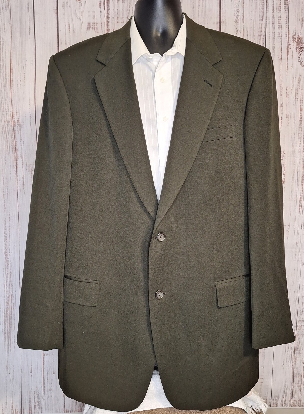 Evan Picone 2 Piece Suit Mens 44XL 36X34 Solid Green Wool Ventless Quality used condition. Please check out the measurements before buying to ensure a perfect fit.Would describe as olive Green Shirt Size on Label 44XL EST Shoulder- Hem 34.00'' Shoulder- Shoulder 19.00'' Shoulder- Wrist 27.00'' Armpit- Armpit 23.00'' Top button 22.00'' Everything ships within a day. Feel free to message me with any questions. Thank you very much. 1/6/23 Pants Pleated Cuffed Pants Size on Label Seam (Outer) 45.00'' Waist 36.00'' Waist- Crotch 13.00'' Inseam 34.00'' Extra inseam fabric 1.00'' Everything ships within a day. Feel free to message me with any questions. Thank you very much. 1/6/23