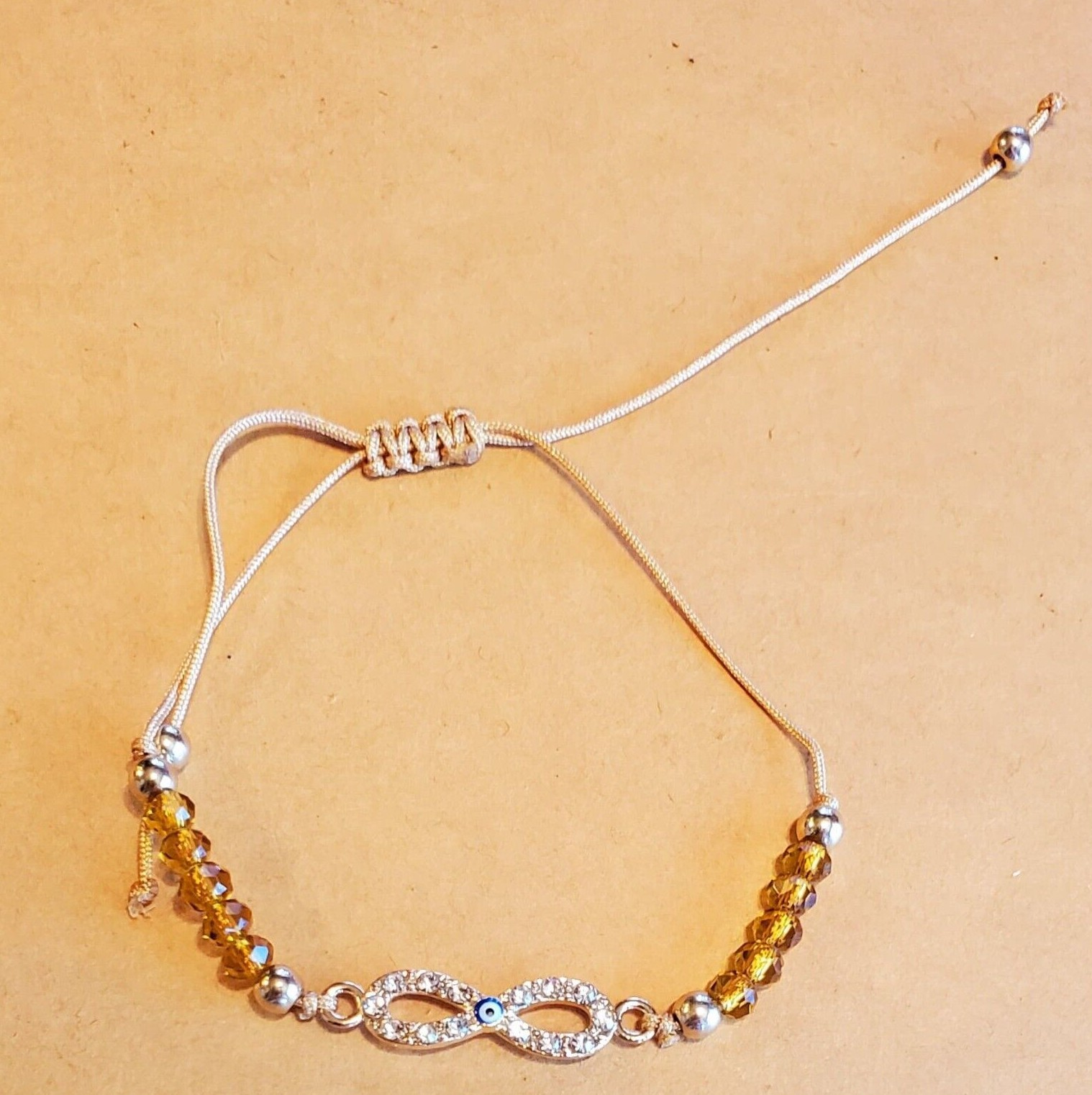 Stay safe and stylish with this Evil Eye Infinity bracelet, inspired by Mexican protection symbols. Featuring an infinity charm and iconic evil eye bead, this adjustable slide knot bracelet can also be worn as an anklet—perfect for everyday protection and positive energy. Features: Evil eye bead for protection against negative energy Infinity charm symbolizing endless good vibes Adjustable slide knot closure for a comfortable fit Versatile design worn as bracelet or anklet Lightweight and durable materials Ideal as a meaningful gift or a personal talisman for protection! Comes in a cute Gift Box