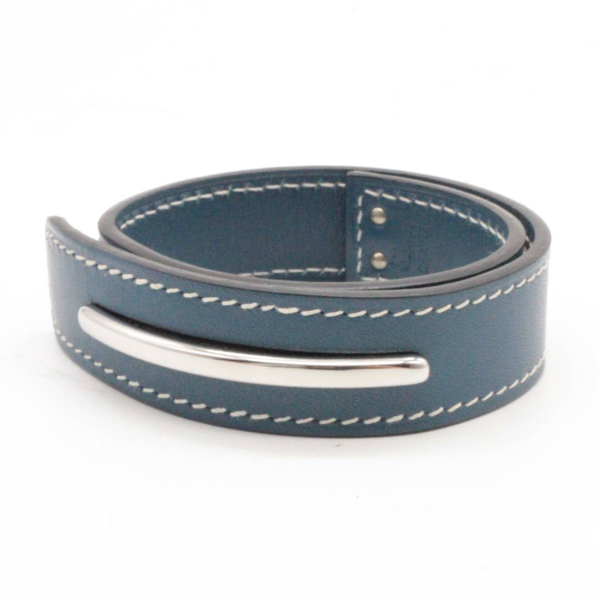 Hermes Trench Leather Bracelet Unisex Navy Metal Leather Used HERMES Apparel Acc