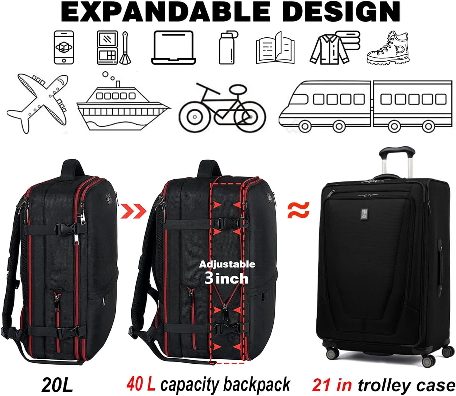 Store New Arrivals Add to Favorite View Feedback Contact Travel Backpack for Men, 19.5"X14"X6" Expandable Carry on Backpack Flight Approved, Extra Large Backpack Suitcase, Water Resistant Luggage Backpack Fit for 17 17.3 Inch Laptop, Black Description Item model number MF-18-CR-BP-BLK Age Range Description Adult Capacity Total 40 Liters Number Of Items 1 Color Black Product Dimensions 7 x 15 x 19.5 inches Country of Origin China Item Weight 3 Pounds Department unisex-adult Units 1 Count LARGE CAPACITY & EXPANDABLE: The carry on backpack is 19.5*14*6(Expand to 9) inch. Capacity: 40L. Travel backpack has a special zipper, completely pulled open, the main compartment space will change to larger. It can easily hold clothes. In order to provide good protection for laptop or tablet, it has very thick padding, so it will be a little heavier, suitable for strong and tall men or women to carry. Fits most 18.4, 18, 17.3,17 inch gaming laptop. Great for a vacation or weekend getaway. FLIGHT APPROVED & CARRY ON: The large travel backpack at the checkpoint can be 180 degrees unfolded, so you can quickly pass the security check, exclusive designed for airplane traveling. A luggage strap on the back is designed to fit on luggage/suitcase, for easier carry on international travel or cruise. It fits overhead and under seat. Great for the weekend traveler. This versatile luggage backpack also meets airline carry-on requirements, for airlines such as Easy Jet, Spirit, Jet Blue. CONCEALED SHOULDER STRAP: The carry on backpack is designed with hideaway padded shoulder straps which can be easily stored away in zippered BACK of BACKPACK, transforming this vacation backpack from carry-on duffel to briefcase style and provide you a more flexible carrying experience. The luggage backpack is light to carry due to its adjustable shoulder straps, comfortable air-mesh ventilated back panel. The best present choice for Thanksgiving Day, Christmas, New Year, Valentine's Day. AMPLE SPACE AND REASONABLE DESIGN: Double Front compartments are for little gear such as ipad, pen, phone, earphone, passport. The padded straps include a sternum strap that can be adjusted upward or downward, set to go across your chest, relieving the weight from your shoulder. The oversized anti-theft pocket on the back of the backpack makes it easy to put your phone and wallet into it. I hope that your journey will be safe and enjoyable. STRONG & STURDY: The fabric is made of high density scratch resistant and water repellent polyester, and strengthens the key points of force, which provide more sturdy backpack with lockable zipper heads. Could be survived in different backpack temperatures, this won't show any defects when on the go, ensuring you an unforgettable weekend getaway. Does your partner like to travel? It's an great Birthday present for him. It's also the perfect Fathers Day present for dad. Product Description Extra Large Travel Backpack CARRY ON TRAVEL BACKPACK Extra Large Capacity Travel Backpack Capacity: 26L-40L External Dimension: 19.5*14*6(9) inch Fit Laptop Size: 15.6 inch, 16 inch, 17 inch, 17.3inch, 18.4 Inch Occasions: Airplane Travel, Vacation, Day hikes, Camping, Business, Game show, Shopping, Leisure trip, Outdoor Hiking Camping Overnight Backpack for Men Women. Best Electronics Gift for Thanksgiving, Christmas and Hanukkah in the Computers & Accessories. Metal Zipper Anti-Theft Dedign & High Quality Sturdy Metal Zippers, it is safe guaranteed for protecting your valuable items inside. Side Pocket Large Side Pocket Durable pocket on right side, fit water bottle, small compact umbrella and other items. Side Handle Thickened and wide handle Side handle can use it as a handbag or carry on when use as suitcase. Water Resistant Oxford Water Resistant Oxford Ultra durable water resistant oxford, your belongings will be protected from the elements. Double Zipper Side Pocket Side Handle Water Resistant Roomy Main Compartment Large backpack is spacious enough to hold belongings and essentials for a one-week trip like your clothes, shoes, laptop and so on. Inner compression straps are generous enough in length and the positions could be adjusted , preventing your belongings from shifting. Expandable Compartment The expanded capacity is 40L , to provide you with more packaging capacity. It can also reduce the pressure on the zipper.Allows you to easily control the capacity of your backpack. Adjustable Sternum Strap The sternum straps could be adjusted lengthwise (slide up and downthe the shoulder straps). Offering you better wearing experience. Flight Approved Size Designed to fit the maximum size allowed on an IATA flight, available to fit in the overhead compartment and the under seat storage in flight. 3 In 1 Carry On Backpack Travel Backpack Offering you an easy trip: Luggage backpack is specifically designed with multiple carrying options like BACKPACK, SUITCASE and BRIEFCASE style. Good Gift for Travel Are you planning a nice trip with your family? Do you want to surprise your parents? You definitely want to find a backpack specially designed for a travel or for daily use. Mogplof travel carry on backpack will be a good choice. Idea good gifts for travelers. Also a practical gift for your family or sweetheart. Customer Images ABOUT US We offer the best prices around on high quality products. Our E-store includes media such as books, movies, music and games while offering electronics, toys, sporting apparel, clothing, tools, general home, garden items and more. SHIPPING We are always working hard to ensure your package arrives as soon as possible. Please understand that some factors like weather, high postal traffic, and the performance of shipping companies are outside of our control. We offer free shipping to the lower 48 states and ship within 2 business days of payment, usually sooner. We do not accept P.O. Boxes. Please provide a physical address. For shipping outside of the continental USA, we only use eBay's Global Shi
