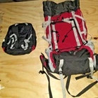 Backpack With Detachable Daypack Cross Strap waist support Expandable Sides. Some elastic zippers pull assists missing.