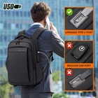 The busines travel backpack is a sleek, lightweight, and durable solution for professionals. With a water-resistant 1800D Oxford fabric, padded compartments for laptops and tablets, and comfortable straps, it's perfect for work, commuting, and travel Spacious Capacity: With dimensions of 17.7 x 7.1-9.8 x 11.8 inches, this smart backpack offers a flexible 26-36L capacity, ideal for business trips, daily commuting, or travel TSA-Friendly Design: The 180° opening and luggage belt simplify airport security, making it convenient for frequent travelers and business professionals Durable Materials: Made from water resistant 1800D Oxford fabric, with a gray-orange polyester lining and metal zippers (not water resistant), this office backpack is built to handle daily use and various weather conditions Comfortable Fit: The shoulder strap with a chest strap, combined with the EVA back panel, ensures comfort during long hours of travel or daily commutes Convenient USB Ports: Featuring USB-A and Type-C ports, this smart backpack allows you to charge devices on the move, making it an ideal choice for tech-savvy commuters and travelers